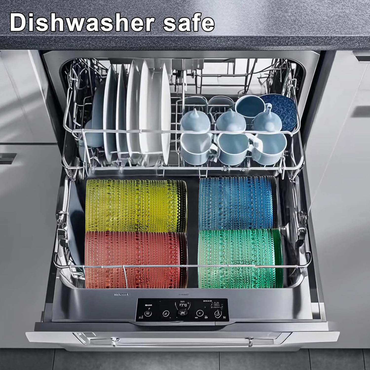 - NEVER FADE:The hobnail glassware set is made of high-quality 100% original color glass,never fade,lead-free food-grade glass,safe for adults and children to use