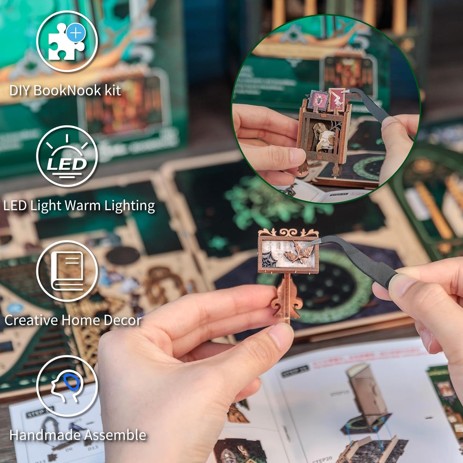 Cutefun Book Nook Kit, DIY Miniature House Kit for Beginners, Book Nook Kits for Adults, Wooden Dollhouse for Bookshelf Decor, Gifts for Family and Friends (The Darkness Herbarium)