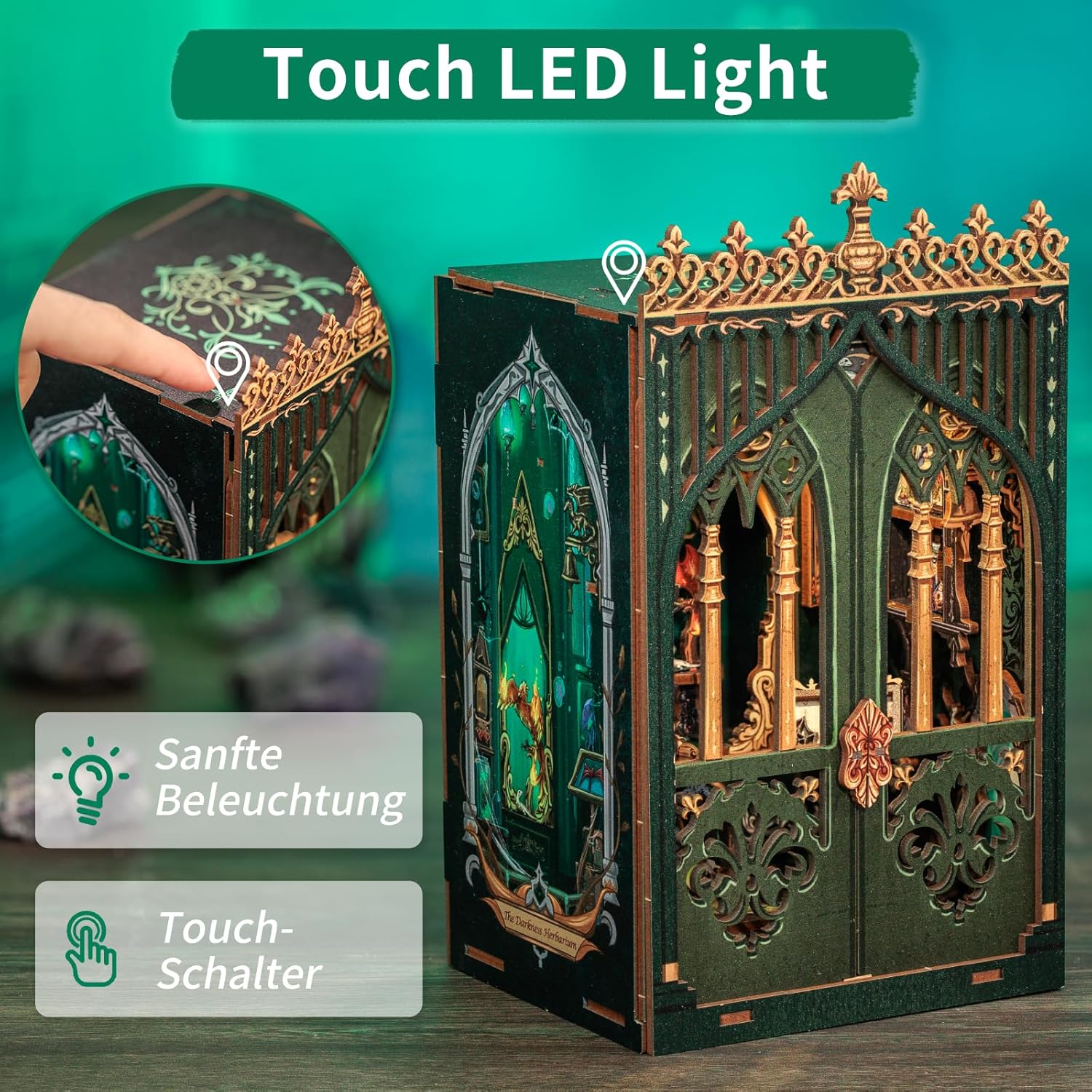 - 【High-quality Materials】Cutefun has been committed to creating high-quality and exquisite DIY book nook kit. All of these 3D wooden puzzle bookends are carefully crafted with high-quality imported wood. The book nook kits for adults wooden puzzle has been carefully checked before delivery to ensure that the accessories are complete and not missing. Note: You need to prepare the silicone liquid glue and two batteries (Type AAA).