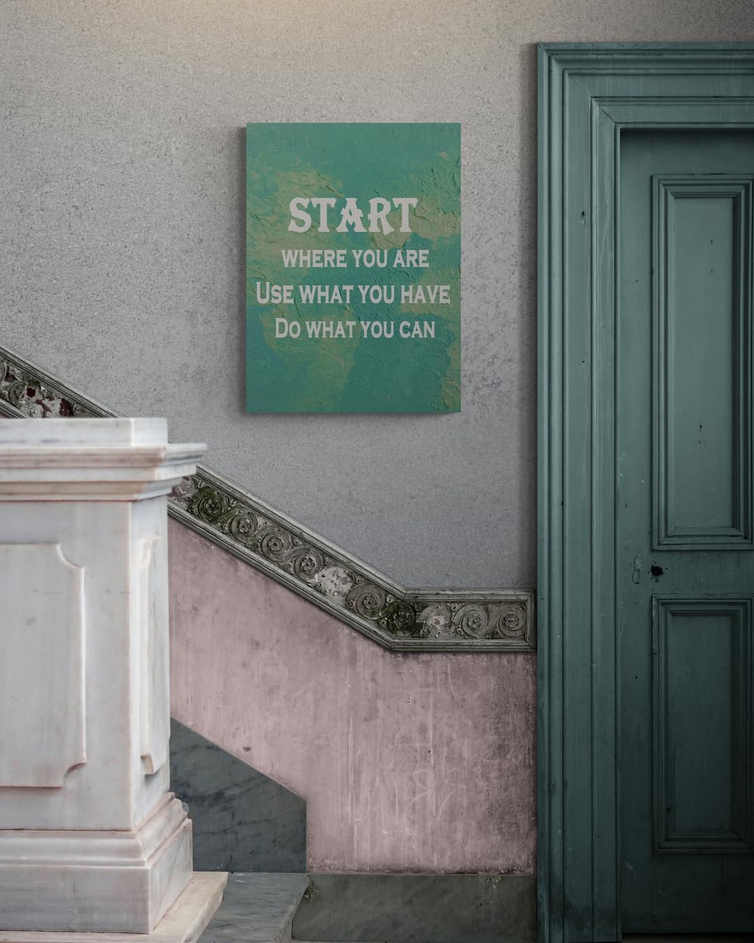- "[ INSPIRE DECOR ] This motivational wall art accompanied by the inspirational quote ""Start where you are. Use what you have. Do what you can."" Encouraging positivity and passion in your daily life."