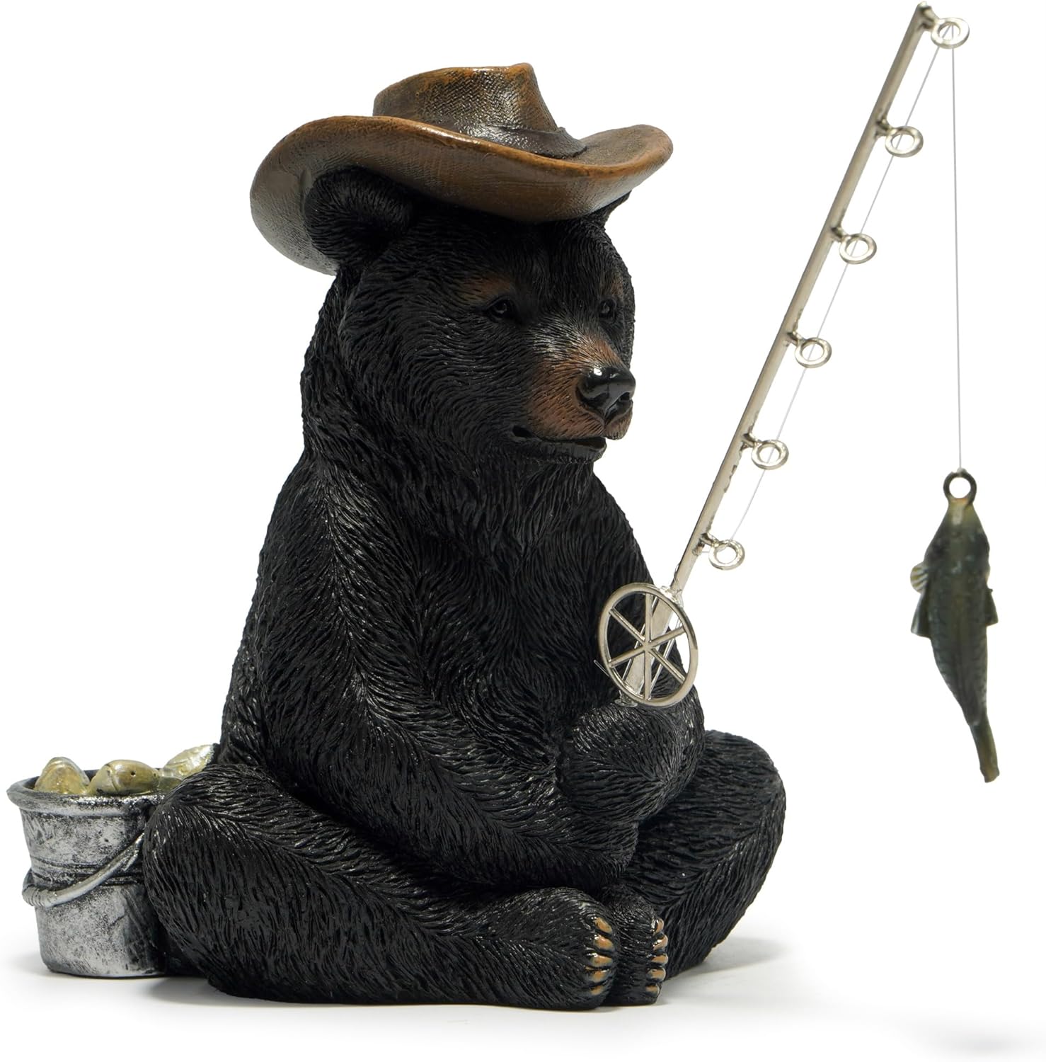 - Black Bear Fishing Decoration: environmentally friendly resin. The size is 4.5"L*3.75"W*5.75"H. Good Decoration for home and garden.