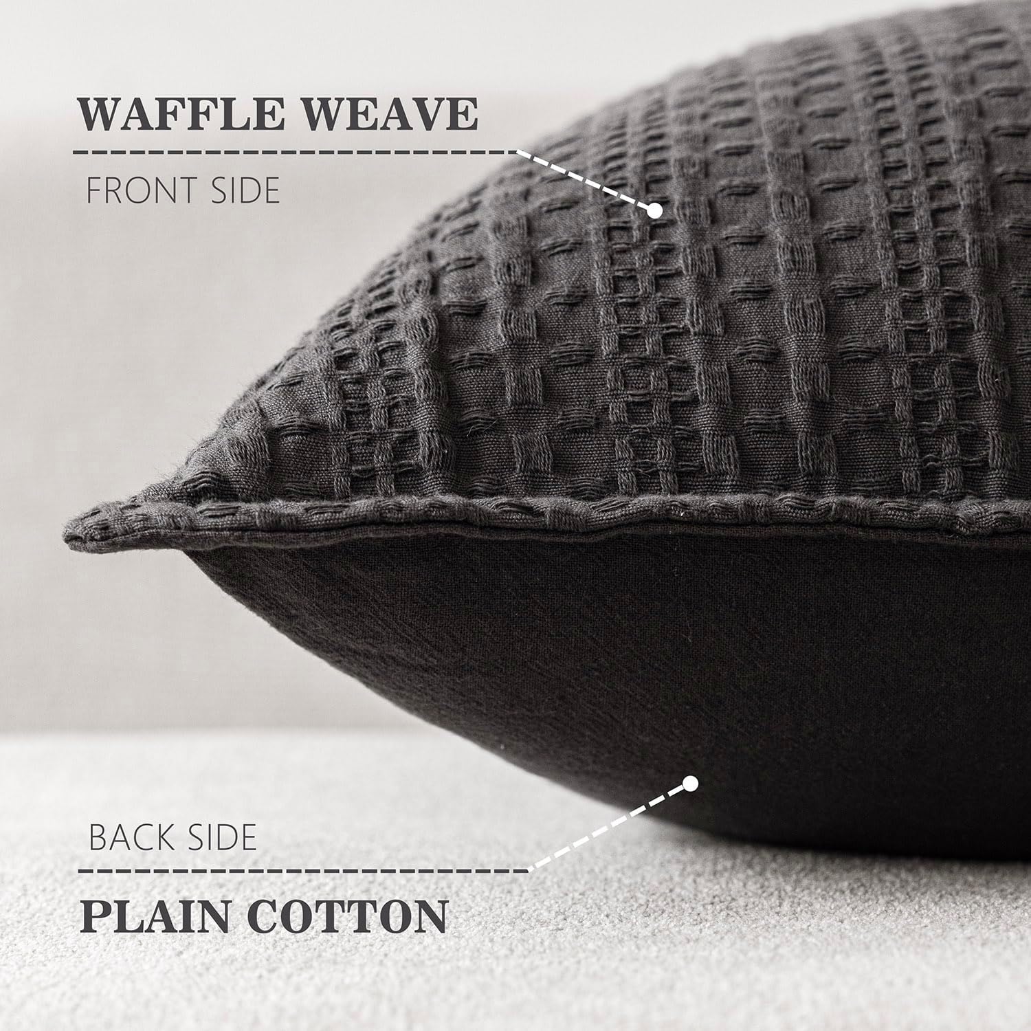 Foindtower Set of 2 Decorative Cotton Waffle Weave Throw Pillow Covers Euro Shams Cushion Covers Accent European Pillowcase for Bed Couch Sofa Bedroom Living Room Home Decor 24×24 Inch Dark Grey