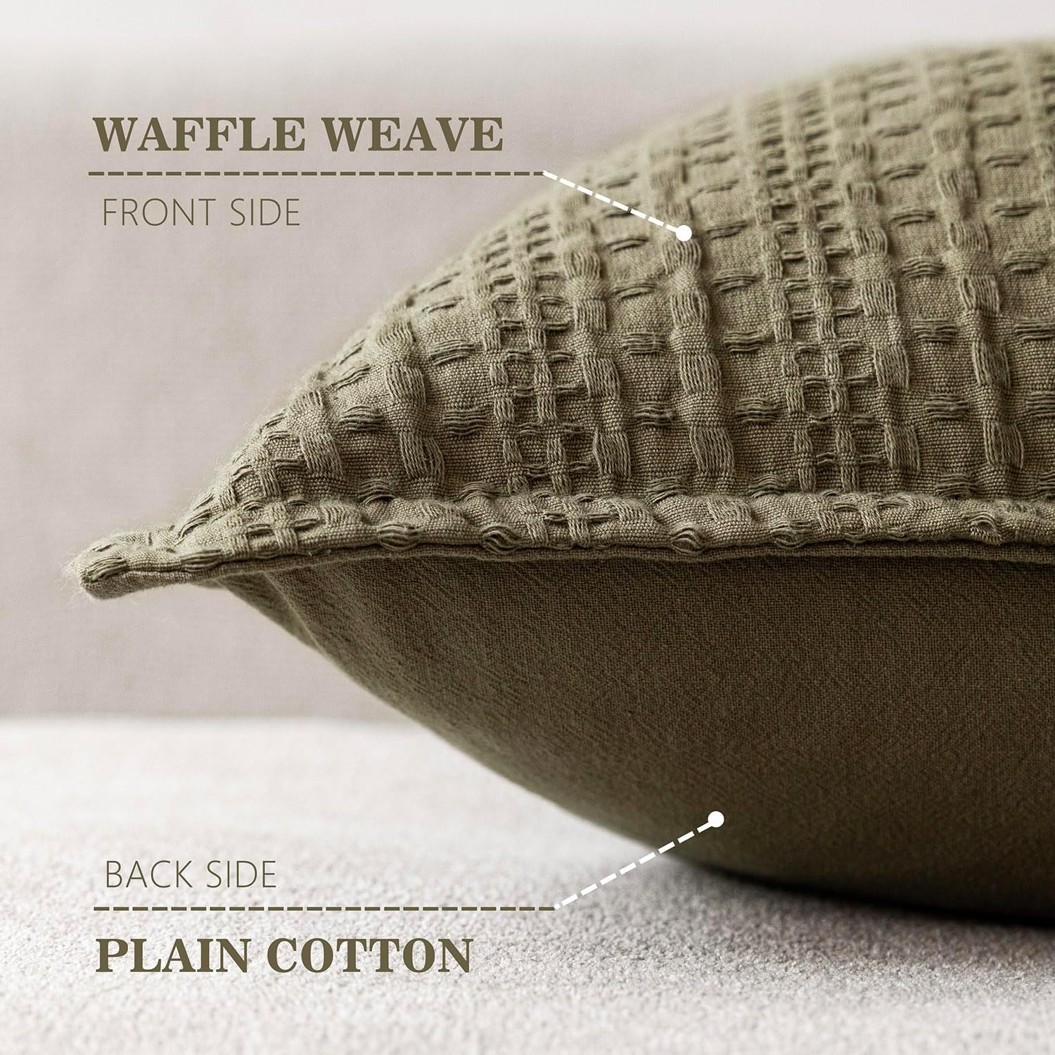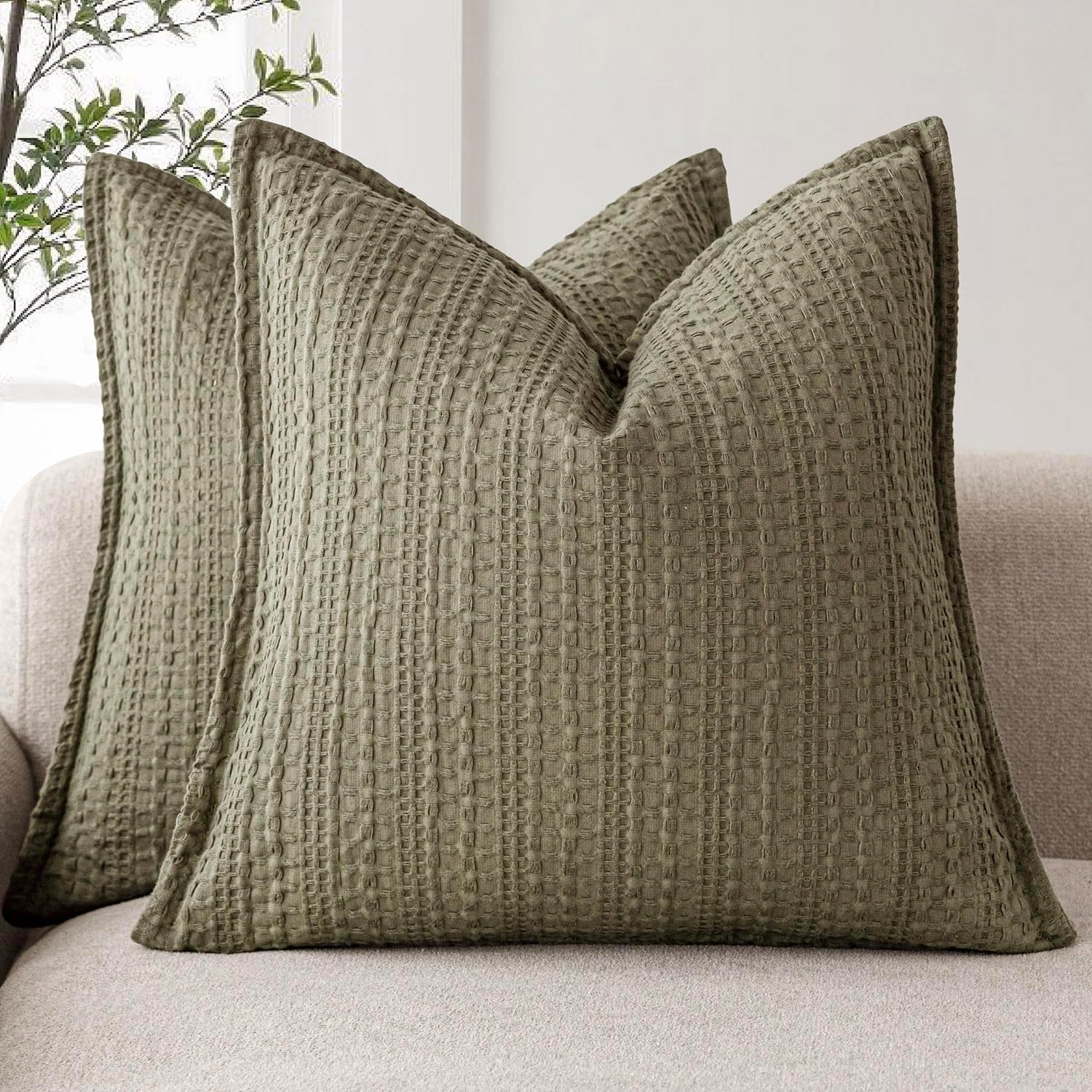 Foindtower Set of 2 Decorative Cotton Waffle Weave Throw Pillow Covers Euro Shams Cushion Covers Accent European Pillowcase for Bed Couch Sofa Bedroom Living Room Home Decor 22×22 Inch Olive Green