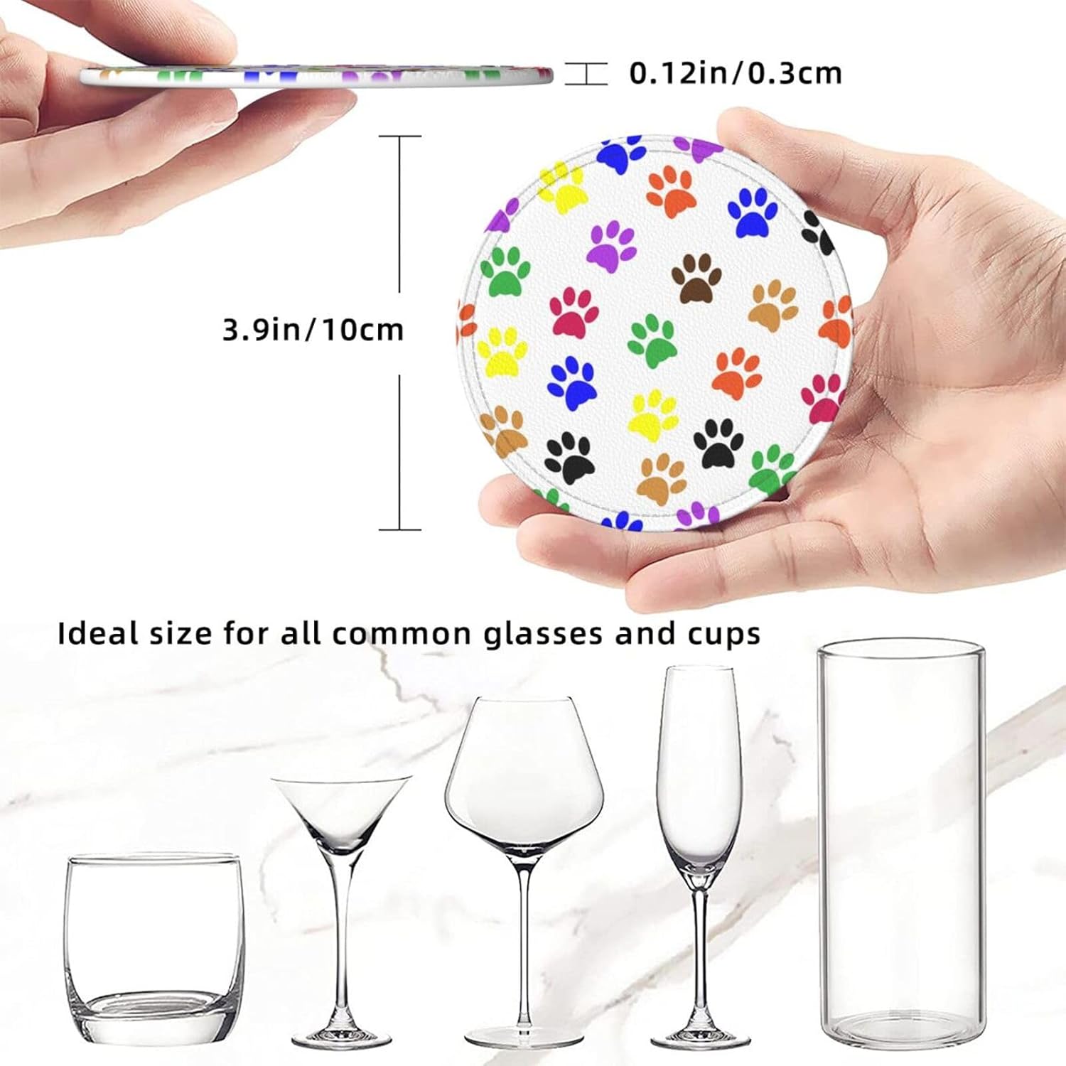 - Suitable Size: Coaster Diameter 3.9 Inch (10cm) Diameter Size Match All Cups And Mugs, Making Them Fit With Coffee Cups, Plastic Cup, Goblet, Mugs And Tumblers.