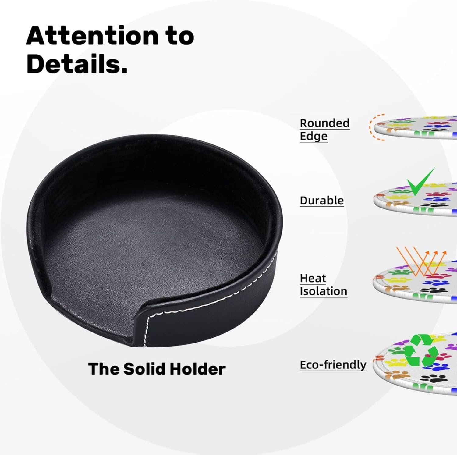 - Decorative Coasters: Pu Leather Drink Coaster Smooth Surface Which Is Gentle To Your Table And Will Not Leave Any Scratches. The High Quality Stitches Make The Coaster More Durable For Use While It Adds An Elegant Look To The Coaster And Matched With Any Kind Of Desktop Decor.