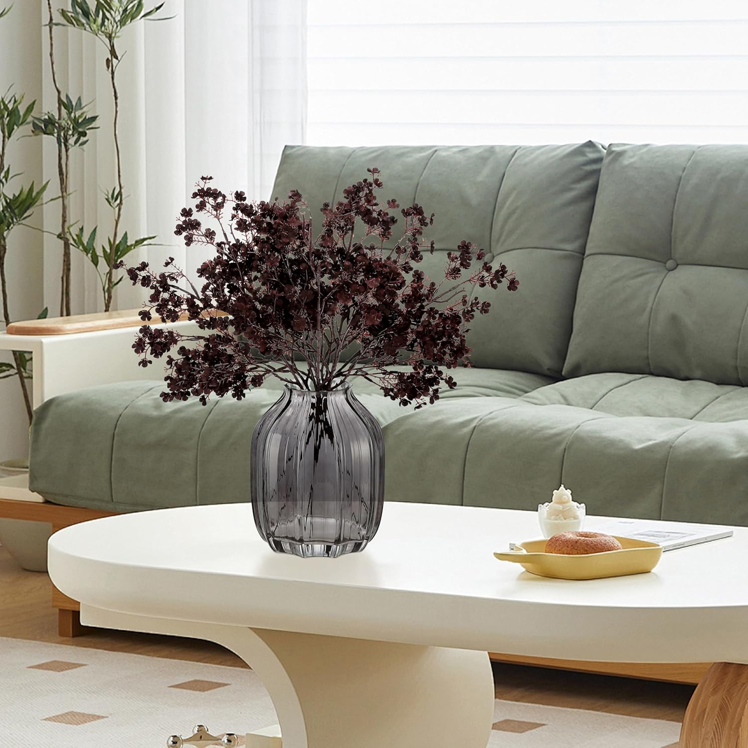 JAKY-Global Silk Babys Breath Artificial Flowers Bulk Blackish Red 6pcs Faux Fall Flowers for Vase Home Kitchen Indoor Bouquet Floral Arrangement Table Centerpieces Farmhouse Decor