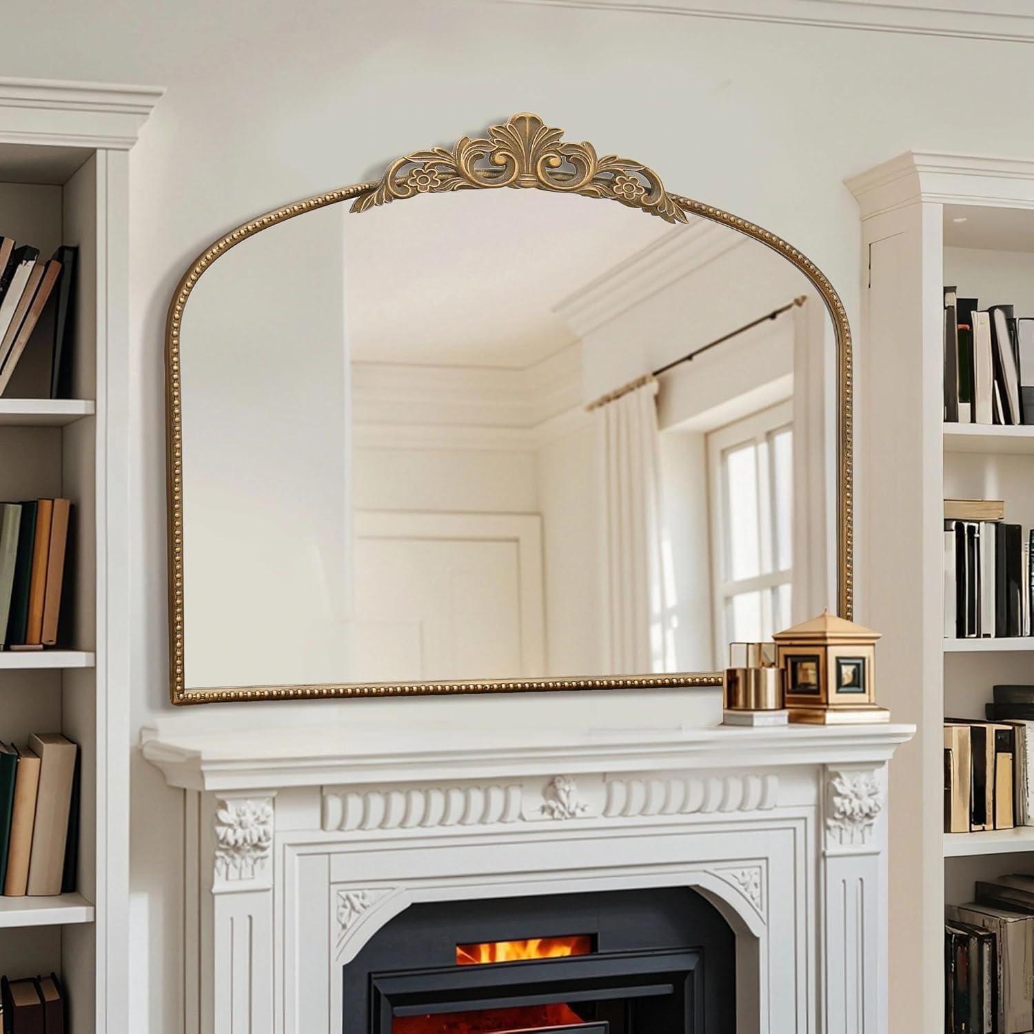Micasso Large Gold Antique Mirror: 40"x 30" French Baroque Arched Mirror - Traditional Ornate Vintage Mirrors for Wall/Mantel/Entryway/Bathroom/Hallway - Home Decor for Living Room
