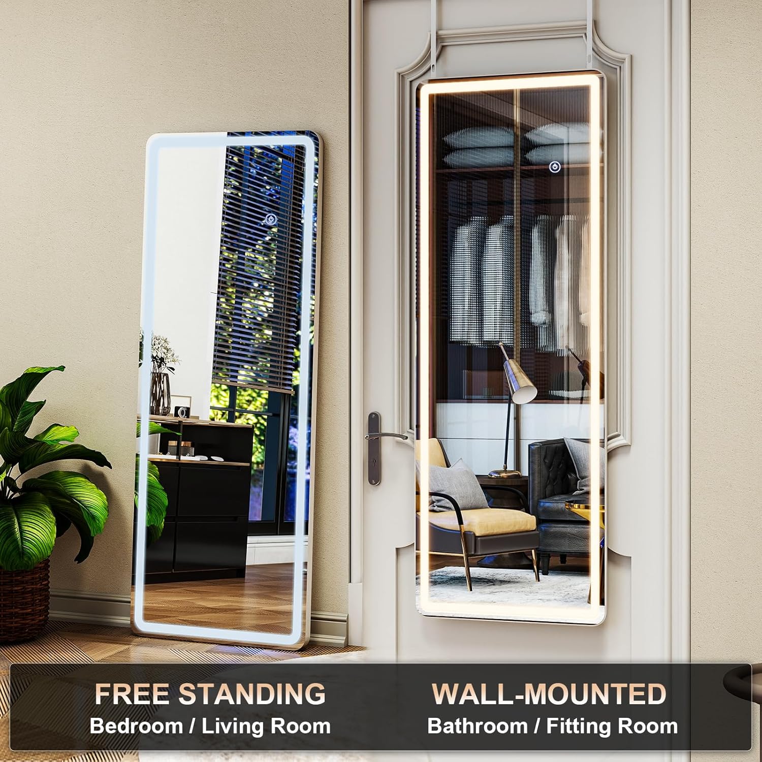- Intelligent Touch Control: one touch to adjust the brightness between soft and strong light, this LED smart full body mirror provides perfect lighting for makeup, dressing and other multi-scenarios, taking care of every detail. Provides clarity and natural light every time you use it