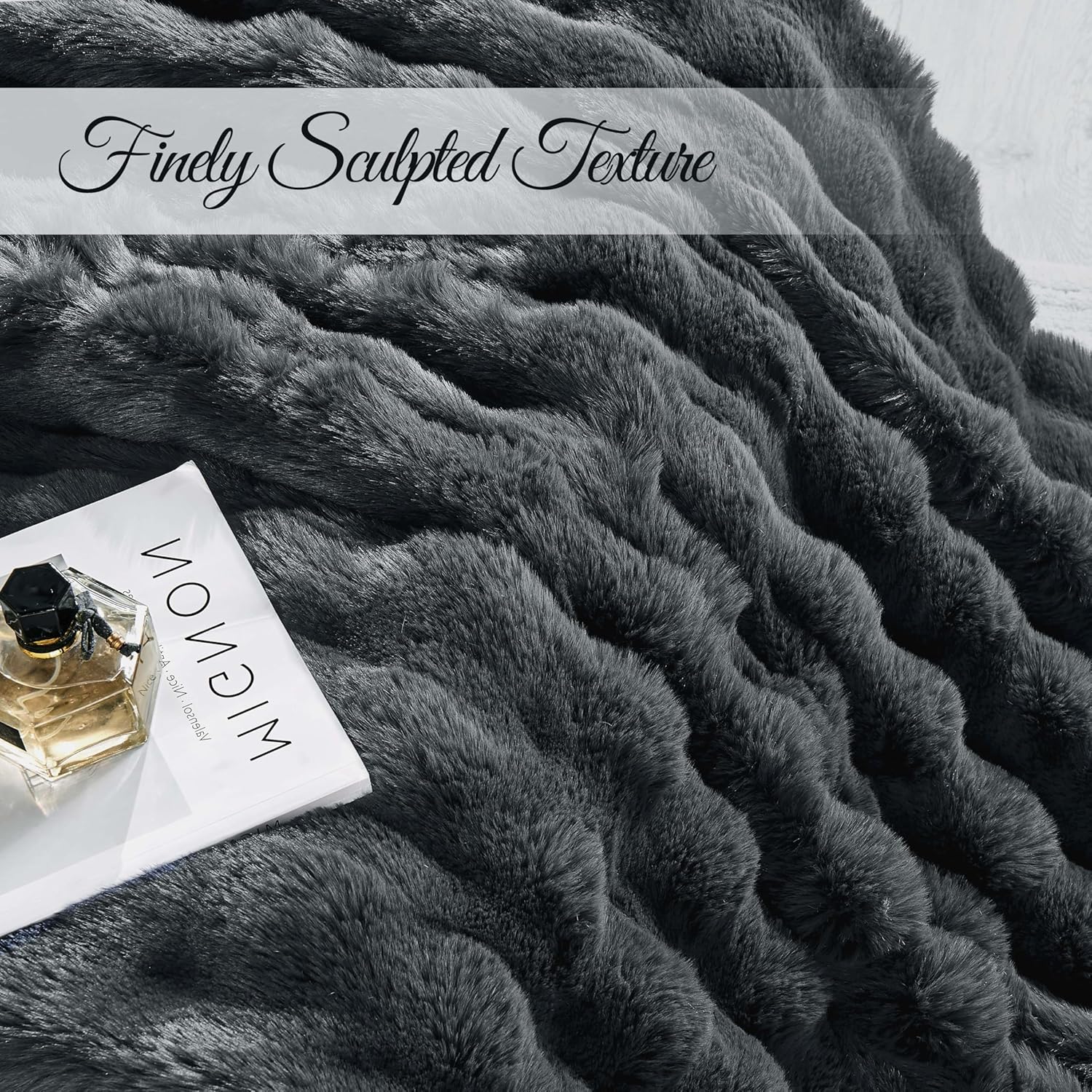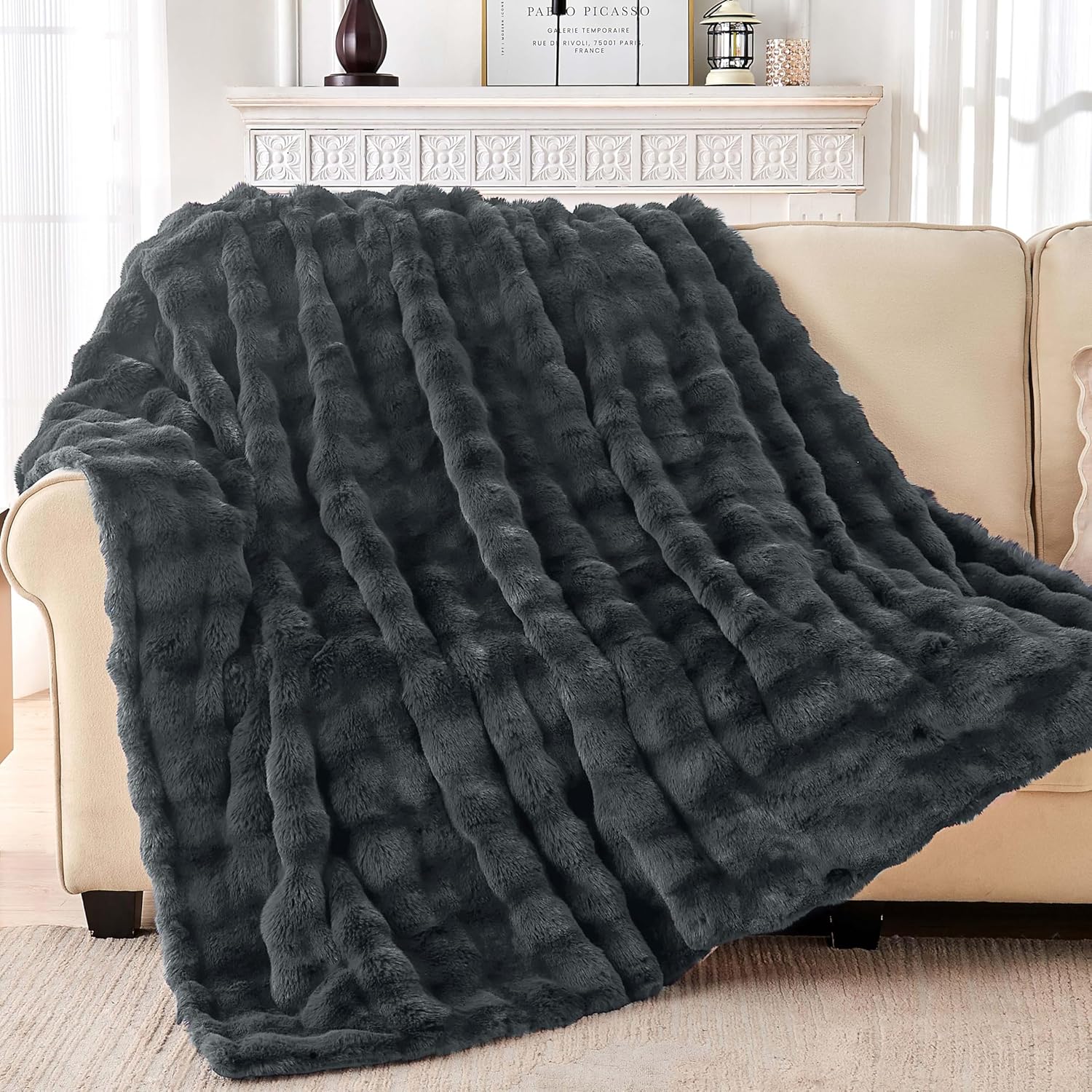 Luxury Faux Rabbit Fur Throw Blanket, Soft Bubble Fluffy Blanket Cozy Fuzzy Throw Blankets for Bed Sofa Couch, Decorative Thick Warm Plush Fuzzy Elegant Soft Mink Blanket (50" x 60", Grey)