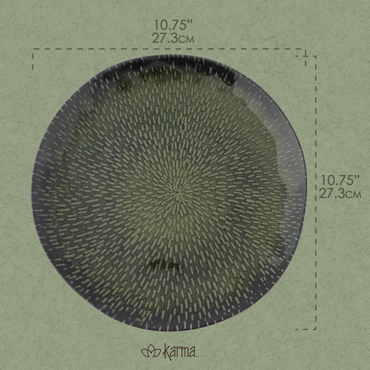 Karma, 10.75 inches Melamine Dinner Plates Set of 4, Reusable Dishwasher Safe Plates for Outdoor and Indoor, Evergreen