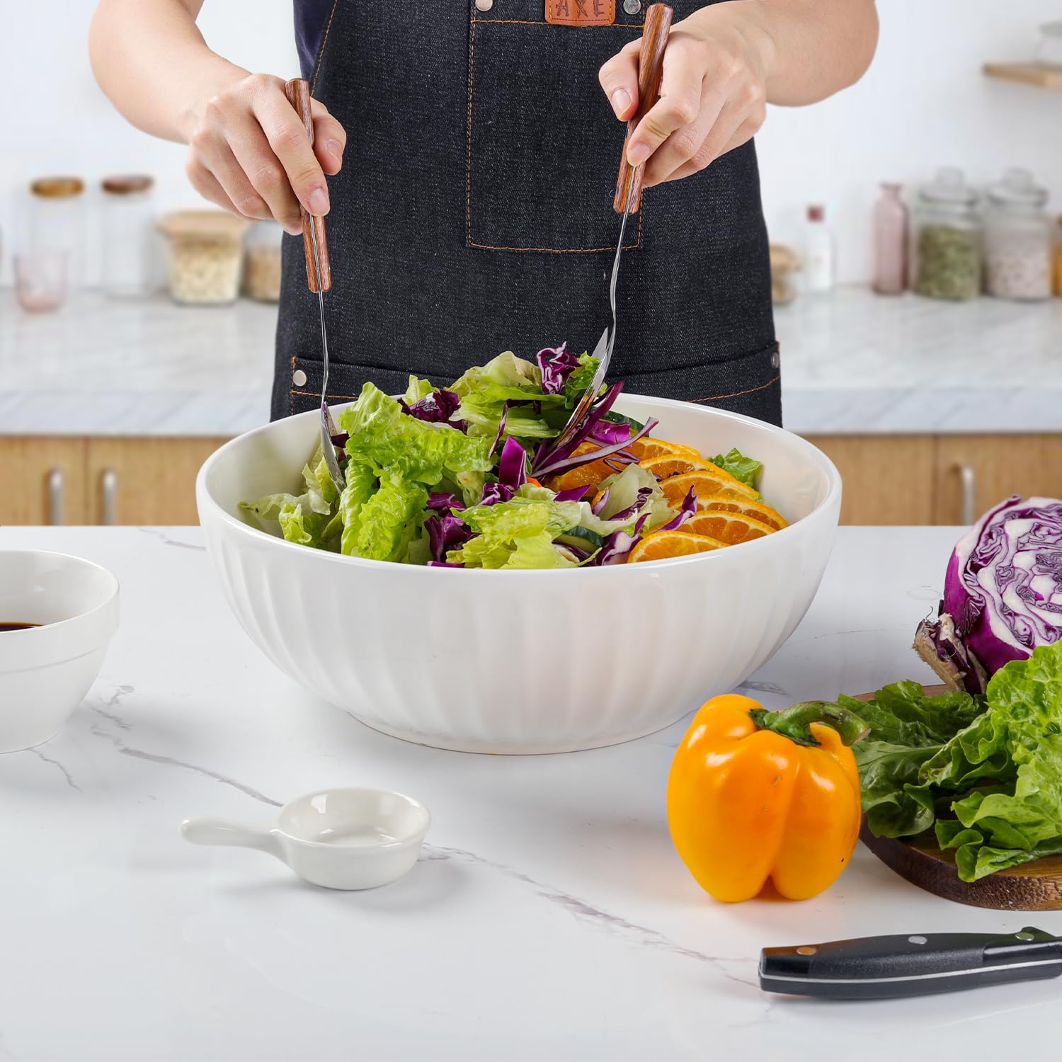 HAPPY KIT Serving Bowls, 130 OZ(11") Extra Large Salad Bowls Set of 2, Porcelain White Mixing Bowls for Salad, Soup, Pasta and Dinner, Large Ceramic Bowl Set for Entertaining