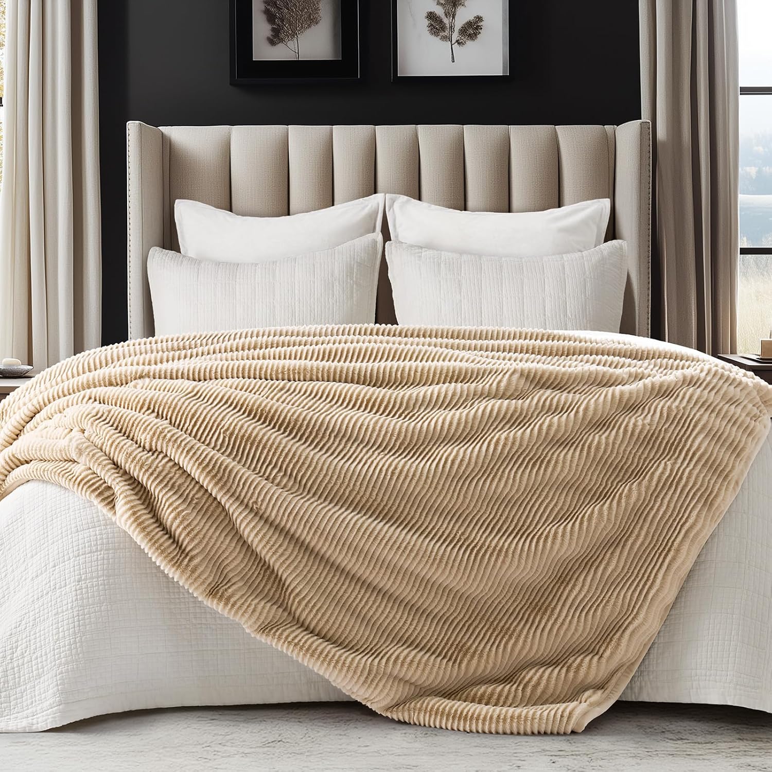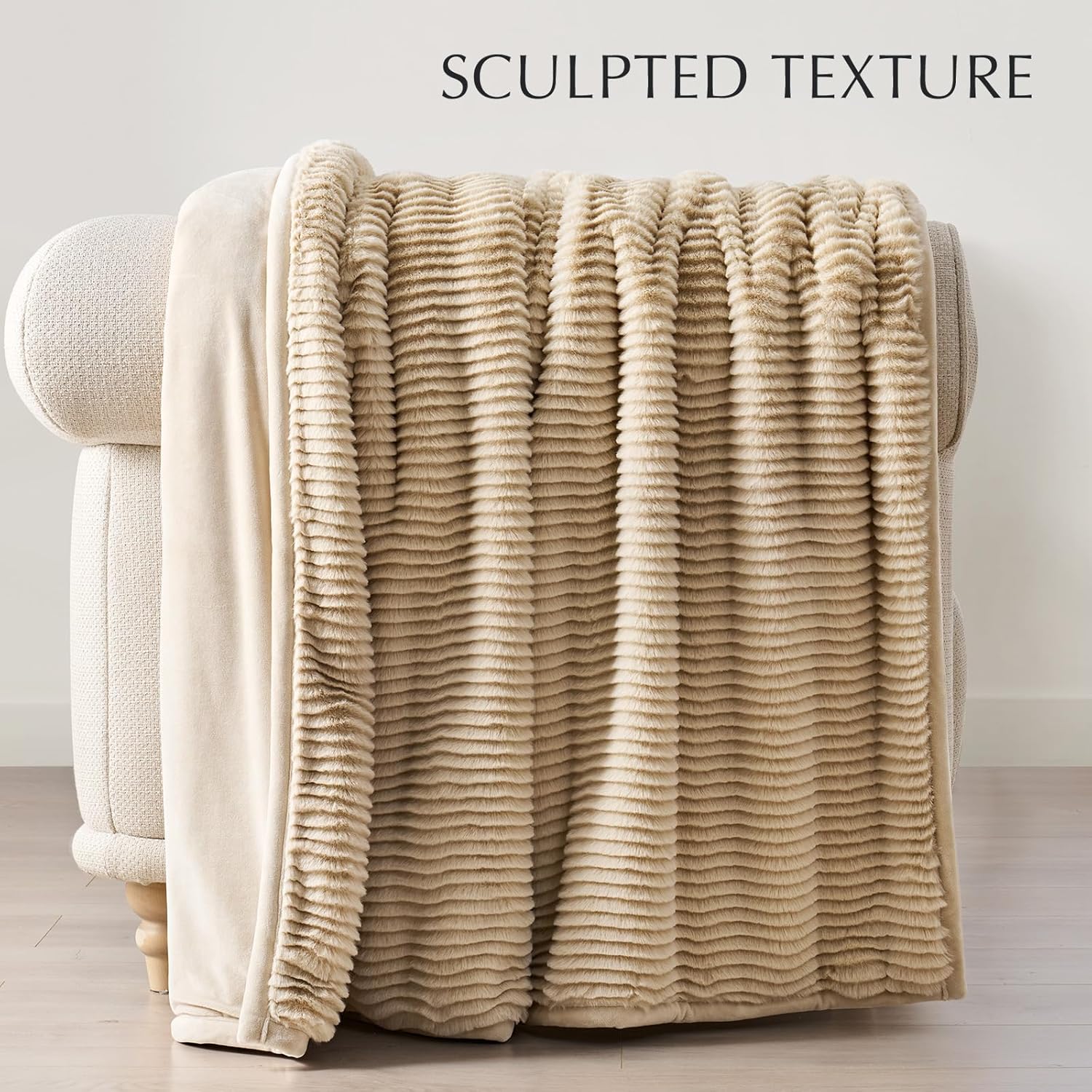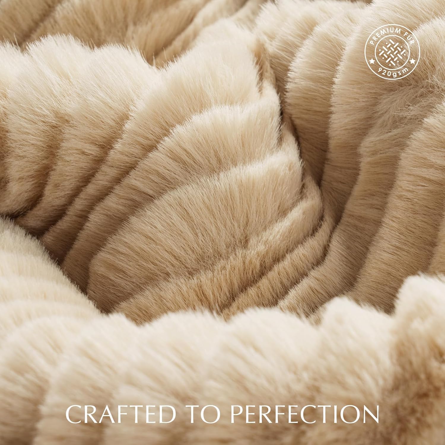 EVERGRACEHOME Ultra Soft Faux Fur Throw Blanket for Couch, Luxury Sculpted Texture Faux Rabbit Fur Blanket for Bed, Fluffy Thick Plush Warm Fuzzy Throw, 920GSM (Beige, 50''x60'')