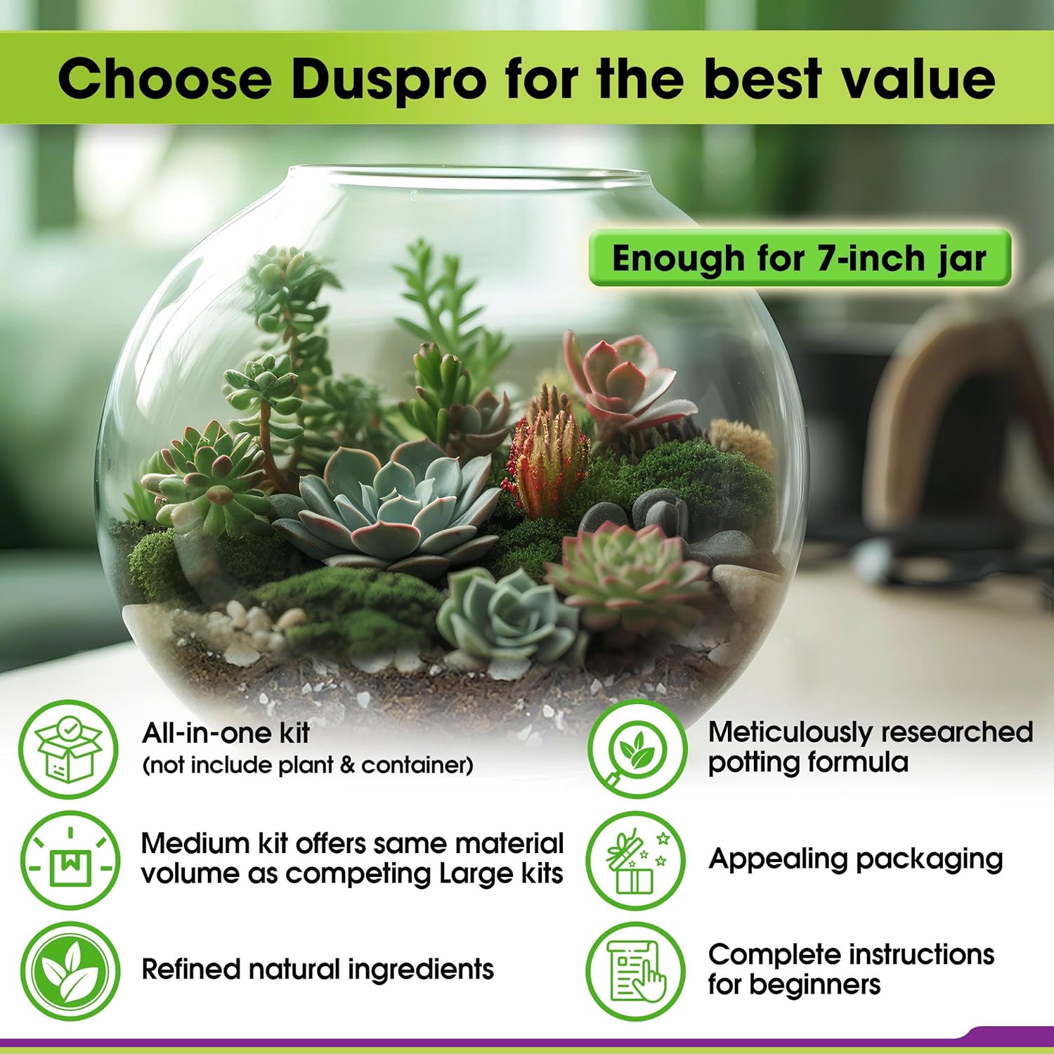 - π± ππ π πππππππ πππππ & ππππππππ ππππππ: Duspro special cactus terrarium kit is a perfect choice for those who want to save costs without compromising product quality. Our price is 30% cheaper than other mini terrarium kit supplies while still maintaining high quality and large volume. Our open terrarium kit comes with a generous amount of materials that is equivalent to a large terrarium kit available on the market.