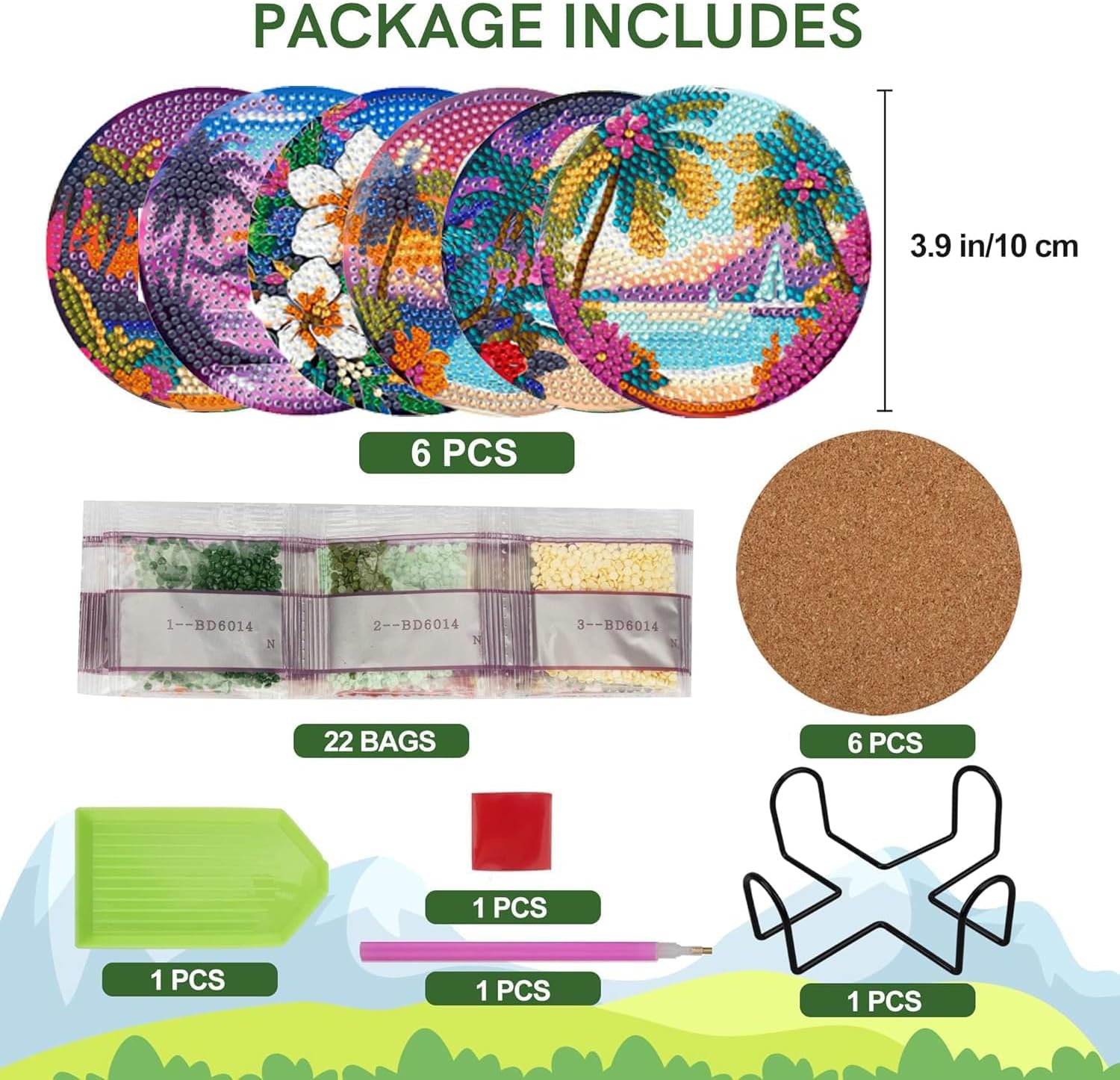 - Diamond Art Kits for Adults: This 6 pcs of diamond painting kits for adults includes 6 pcs diamond painting coasters kits, diamond dots art for adults, diamond painting pens, sticky pens, red glue clay and plastic trays. Each kit offers a variety of colors to choose from, enabling you to create stunning diamond art paintings and diamond arts kit tailored to your taste. For each kit we'll provide 30% diamond more than need.