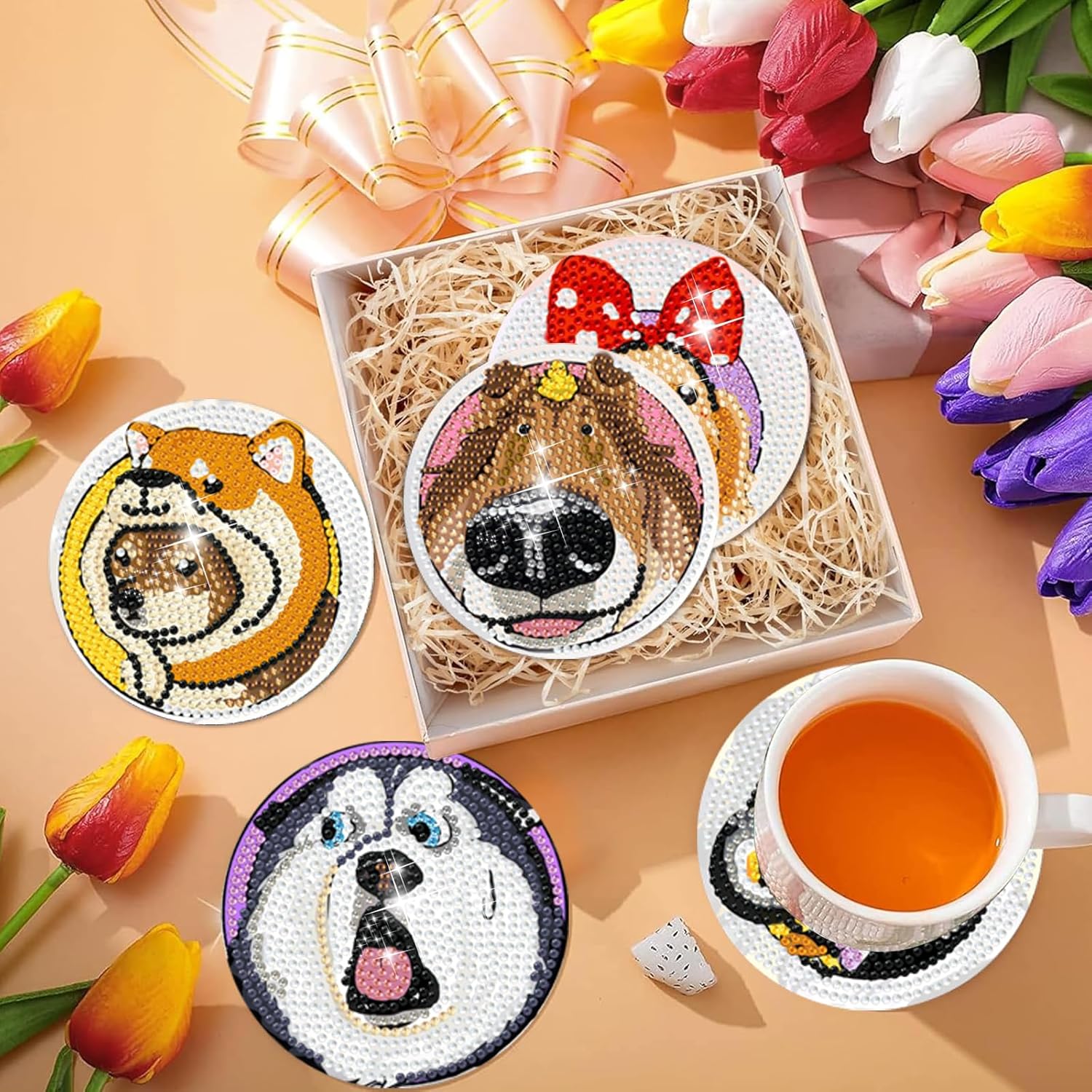 - Thoughtful of Quality: EWJRNSF urprise your loved ones with this unique and thoughtful gift. Our diamond painting coasters kit with holder is a perfect choice for art enthusiasts, craft lovers, or anyone who appreciates stylish and practical items. Features high-quality, vibrant diamond beads, and strong adhesive, the diamonds are bright and colorful, easy to clean and store, give the gift of creativity and let them indulge in the joy of diamond art painting.