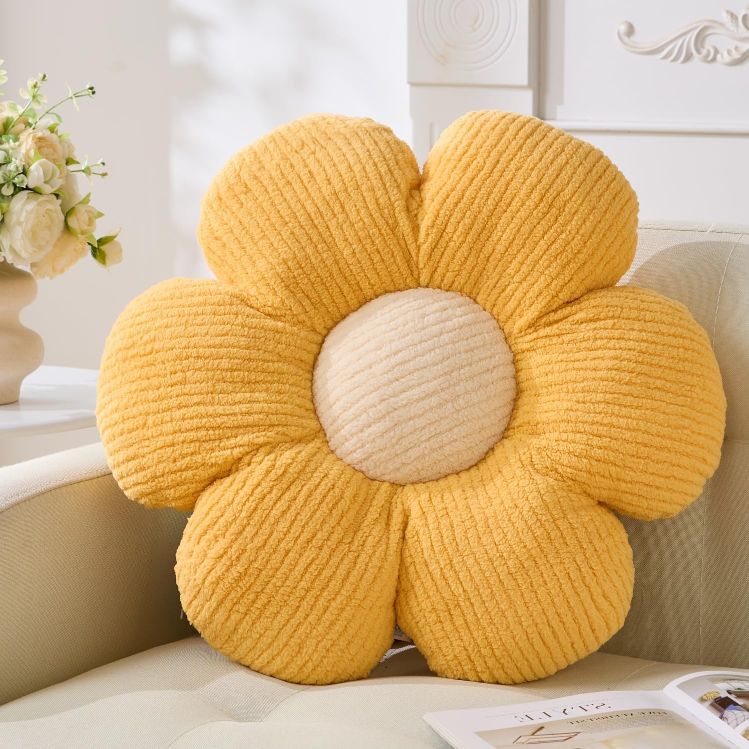Daisy Shaped Throw Pillow - Yellow Flower Plush Cushion, 15.75" Decorative Seating