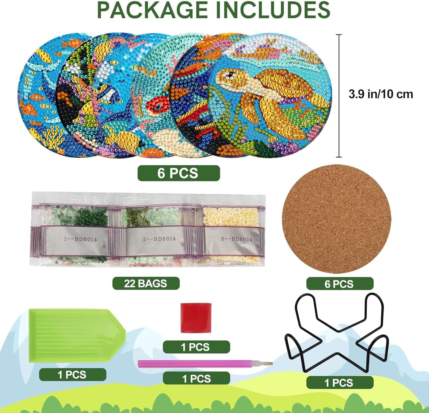 - Diamond Art Kits for Adults: This 6 pcs of diamond painting kits for adults includes 6 pcs diamond painting coasters kits, diamond dots art for adults, diamond painting pens, sticky pens, red glue clay and plastic trays. Each kit offers a variety of colors to choose from, enabling you to create stunning diamond art paintings and diamond arts kit tailored to your taste. For each kit we'll provide 30% diamond more than need.
