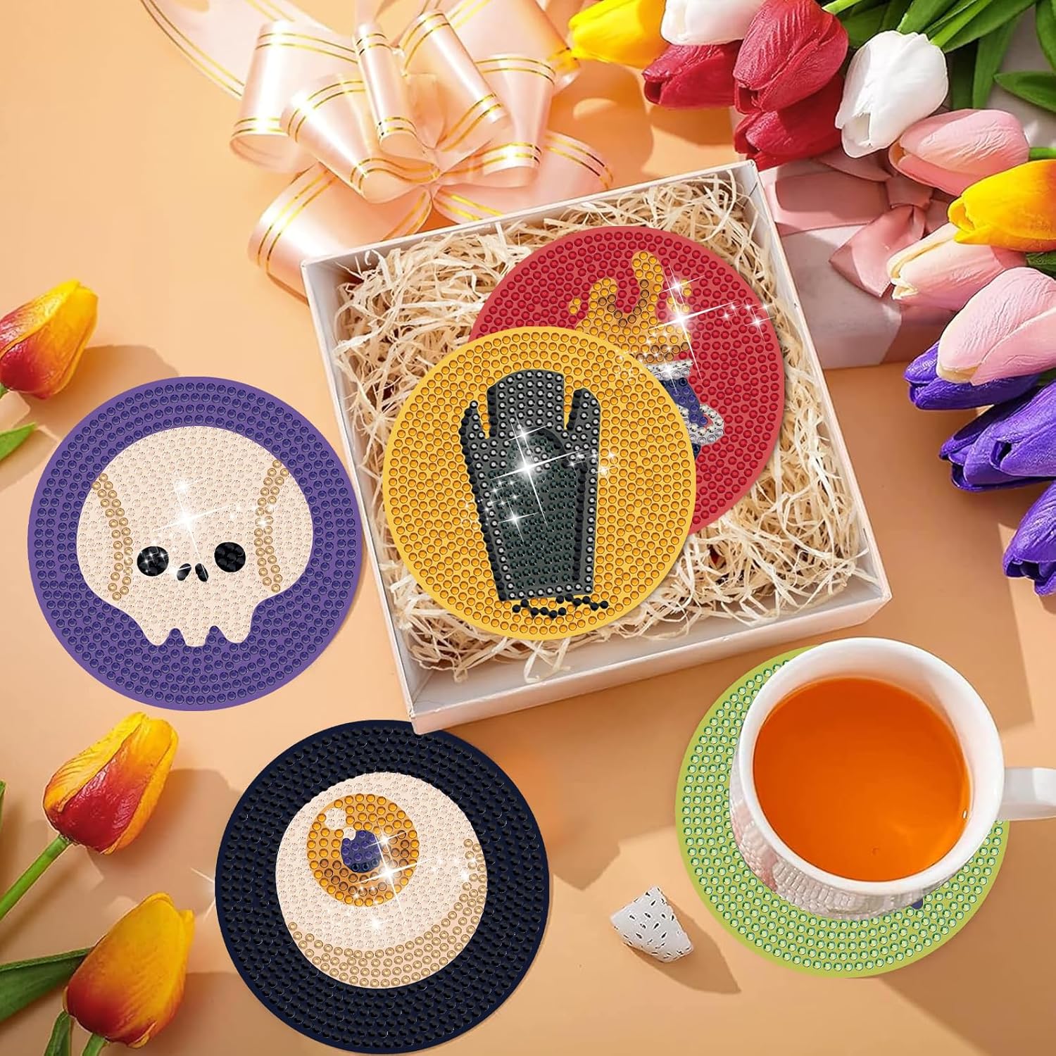 - High Quality Materials - Our Halloween diamond painting coasters are made from premium wood with patterns, for anyone interested in diamond art. The patterns and numbers are clear and easy to read. The strong adhesive ensures the rhinestones stay firmly attached to the coaster and do not fall off easily. This set also includes high-quality diamond painting accessories.