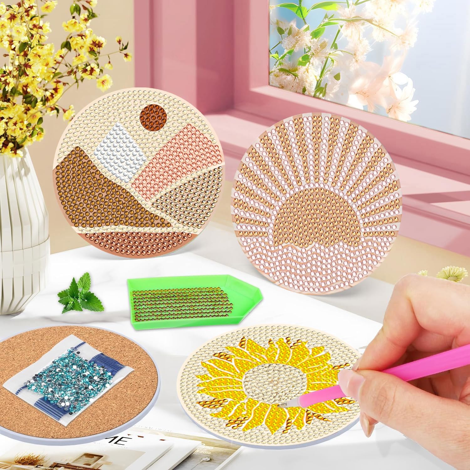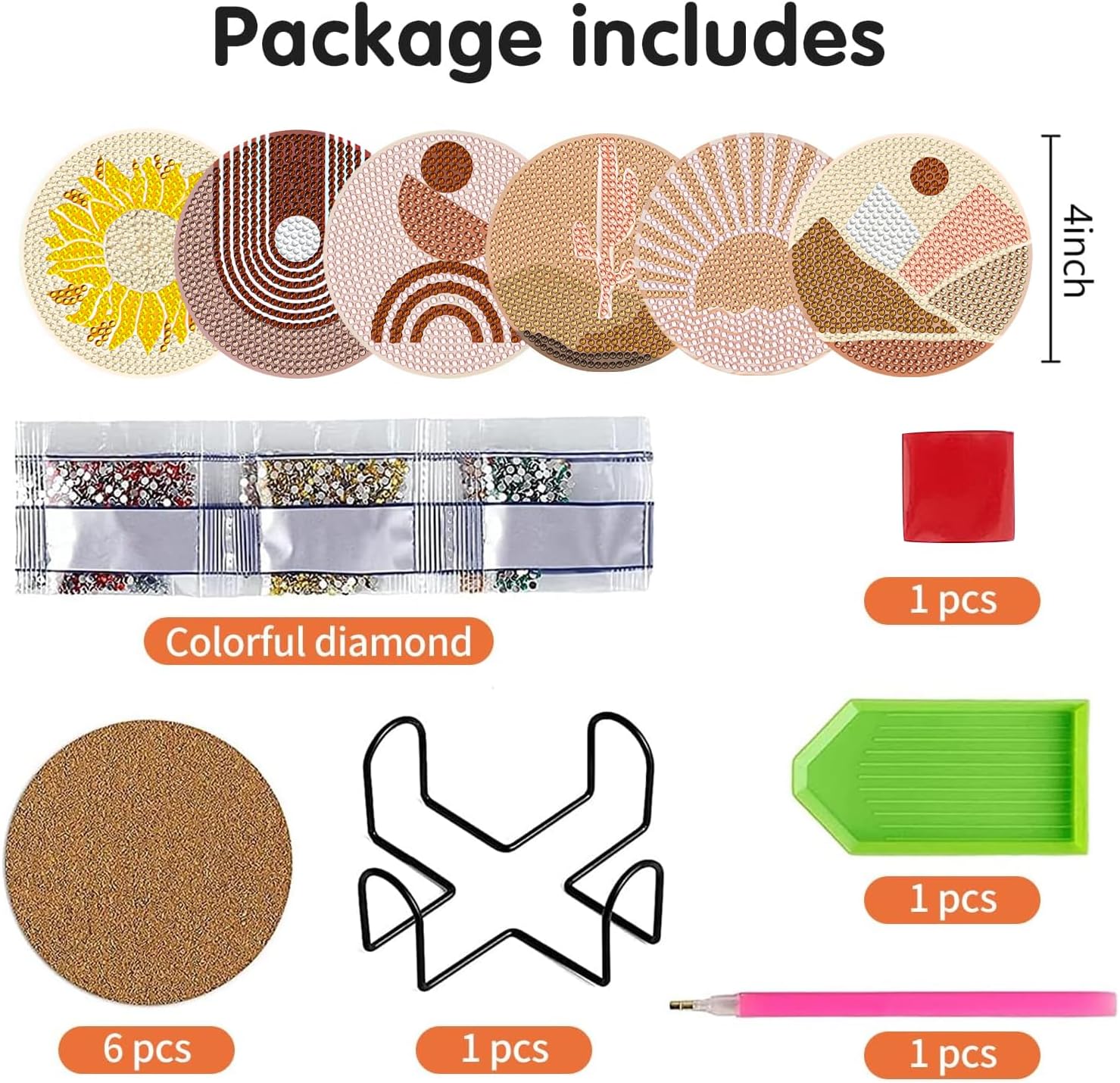 - Complete DIY Experience: Unleash your creativity with our diamond art kits for adults. Each kit contains 8 beautifully designed coasters, vibrant diamonds, and essential tool set. The tool set includes a diamond painting pen, clay glue, and a diamond tray, providing everything needed for an immersive crafting proces
