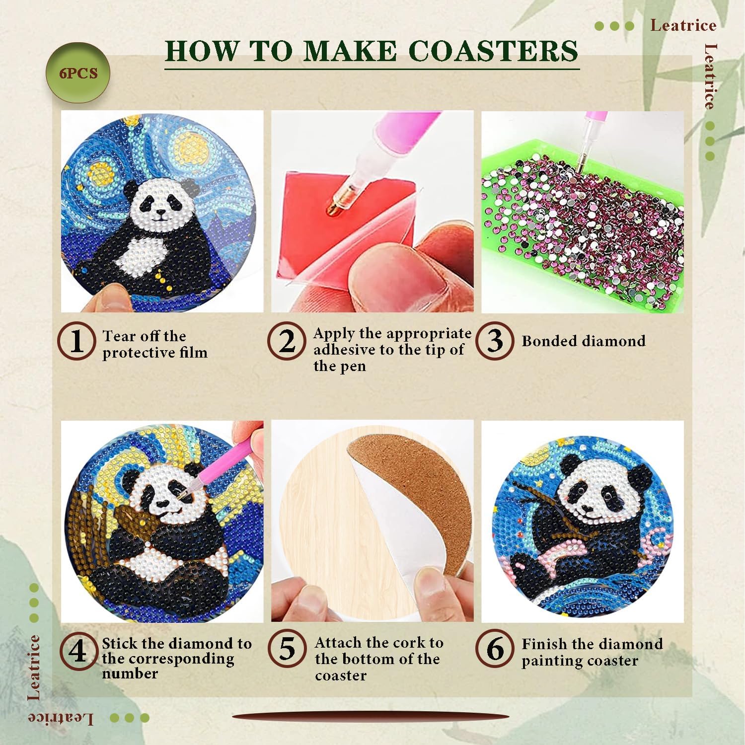 - Creative design: Our panda Diamond dot coasters have been carefully designed to provide each art lover with their favorite style, scenery, animals, plants, flower, and simplicity, making Diamond Art coasters all lovely and charming works of art. Animal Dimond painting coasters sparkle that you can enjoy the satisfaction of creating your own artwork, your eye for beauty, and build focus and patience in a rewarding manner.