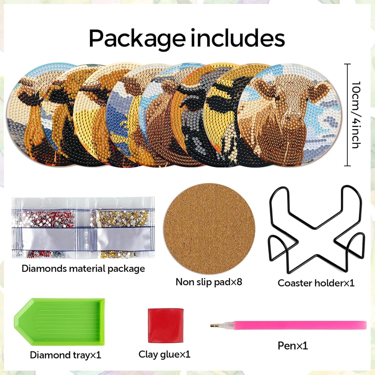 - Diy Enjoyment: Diamond dot art coasters packs designed for both beginners and experienced adults, this diamond painting kits for adults is simple to use. just only to tear the film, correspond the cow diamond dot for adults to the numbers on the diamond art coasters, and enjoy creating beautiful diamond paintings coasters kit. We have a strong glue that you don't have to worry about diamonds dot fall off