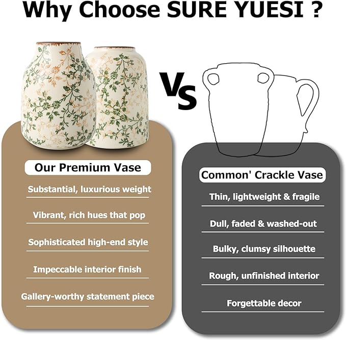 - HIGH QUALITY CRAFTSMANSHIP: Expertly crafted from fine ceramic, this floral vase is built for durability and long-lasting beauty. Its heirloom quality look and feel make it a distinguished addition to your ceramic vases for home decor collection.