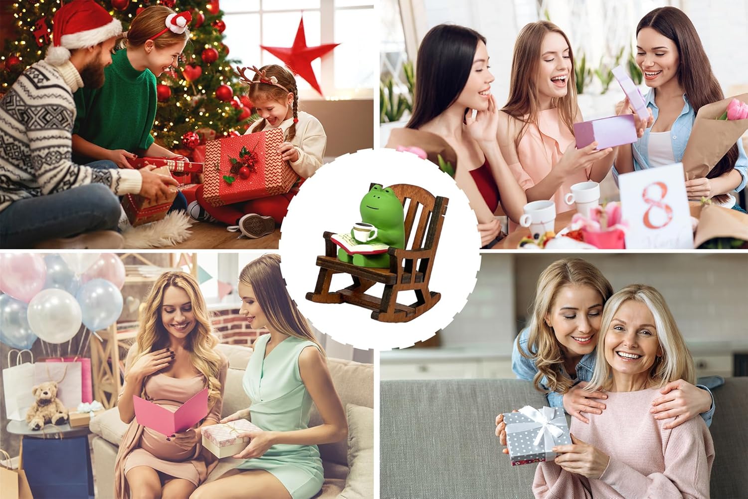 - Size and design: This set includes a frog sitting in a rocking chair enjoying coffee, a panda resting on the chair, and a desk with a table lamp and a cute cat statue. The design adds interest to your space and enhances your happiness