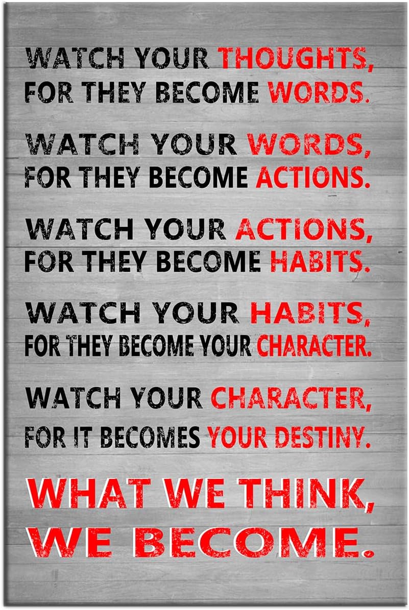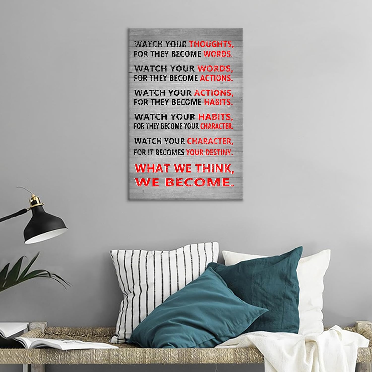 Inspirational Canvas Wall Art Motivational Watch Your Thoughts Entrepreneur Quotes Poster Print Inspiring Painting Picture Artwork for Modern Home Bathroom Classroom Ready to Hang [12''Wx18''H]