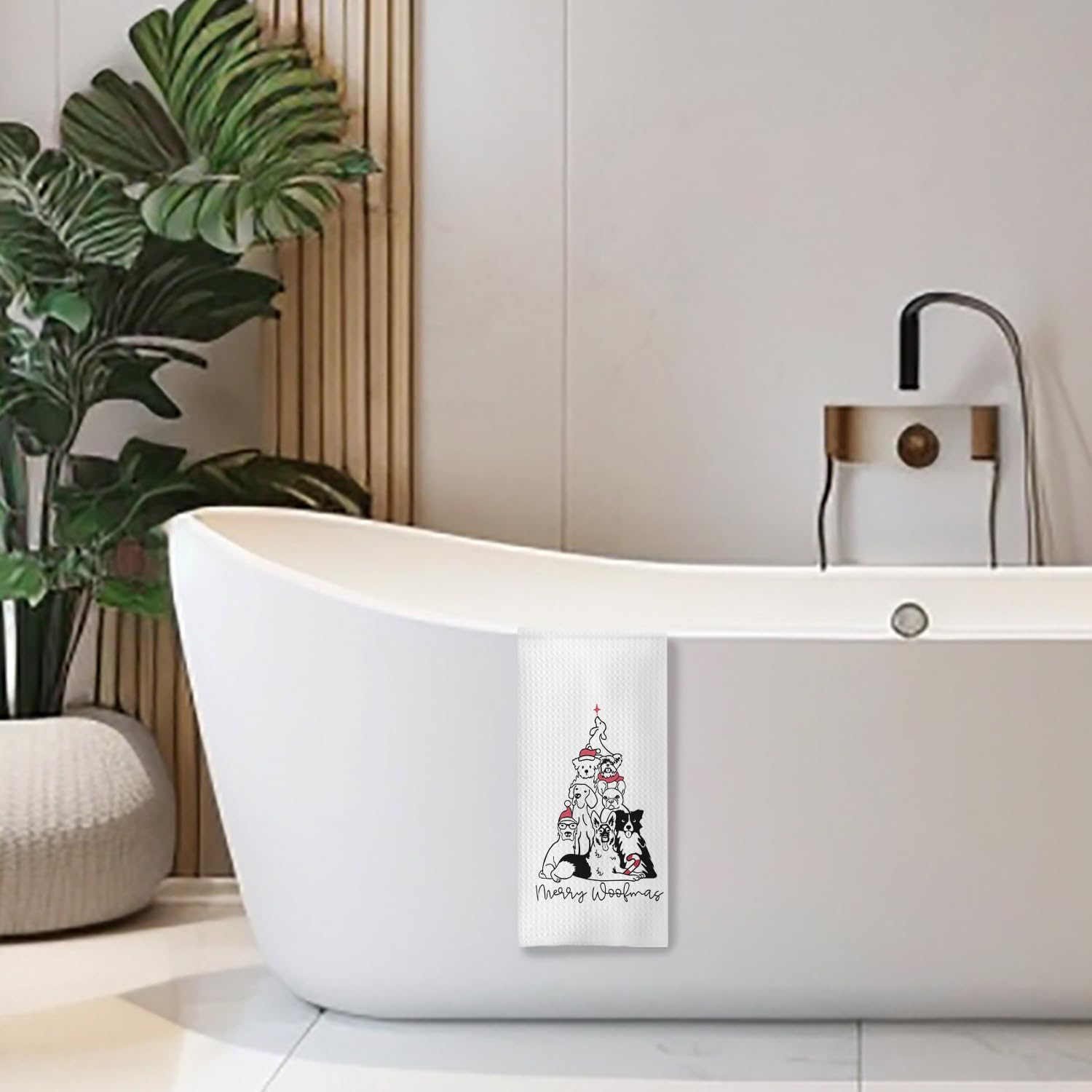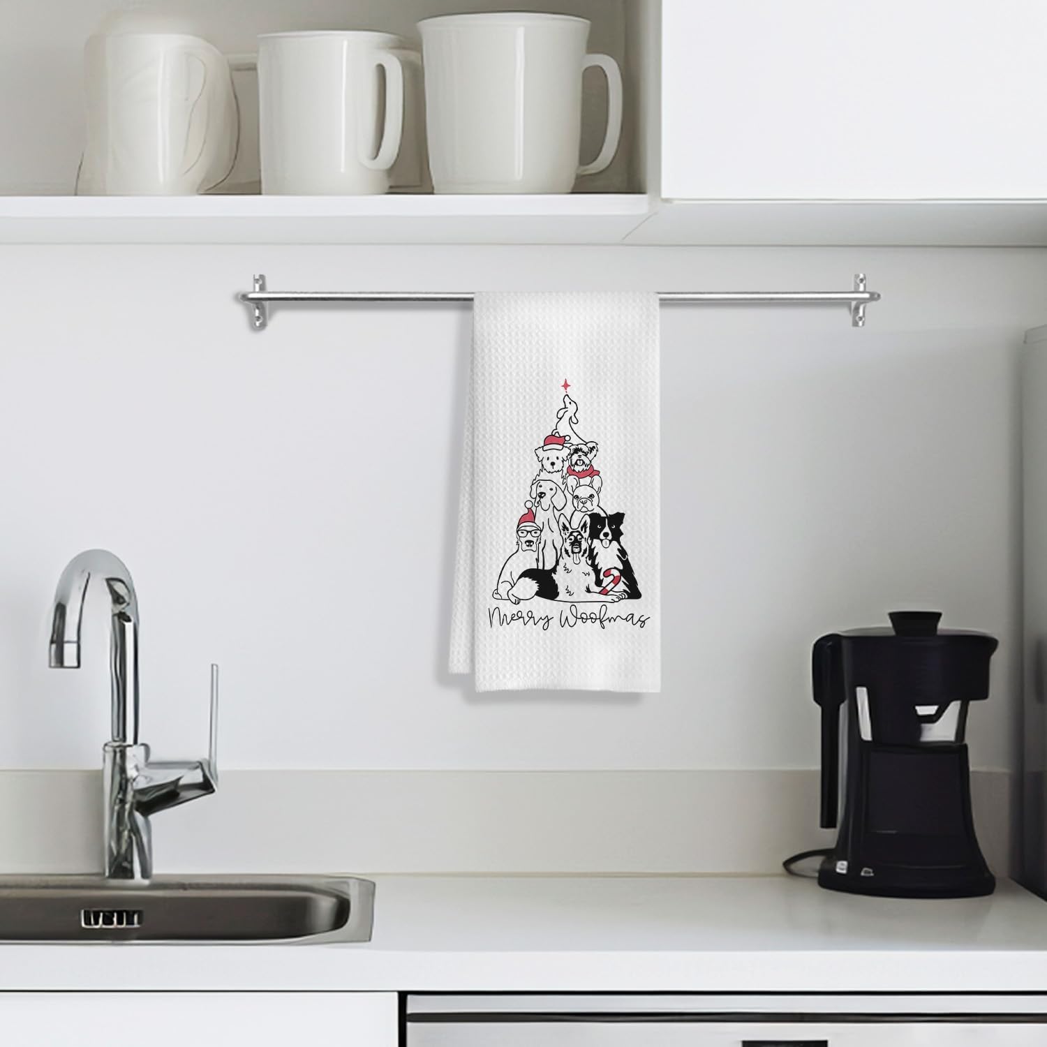 Funny Christmas Dog Kitchen Towels - 16x24 Inches, Gifts for Dog Lovers, Christmas Decor