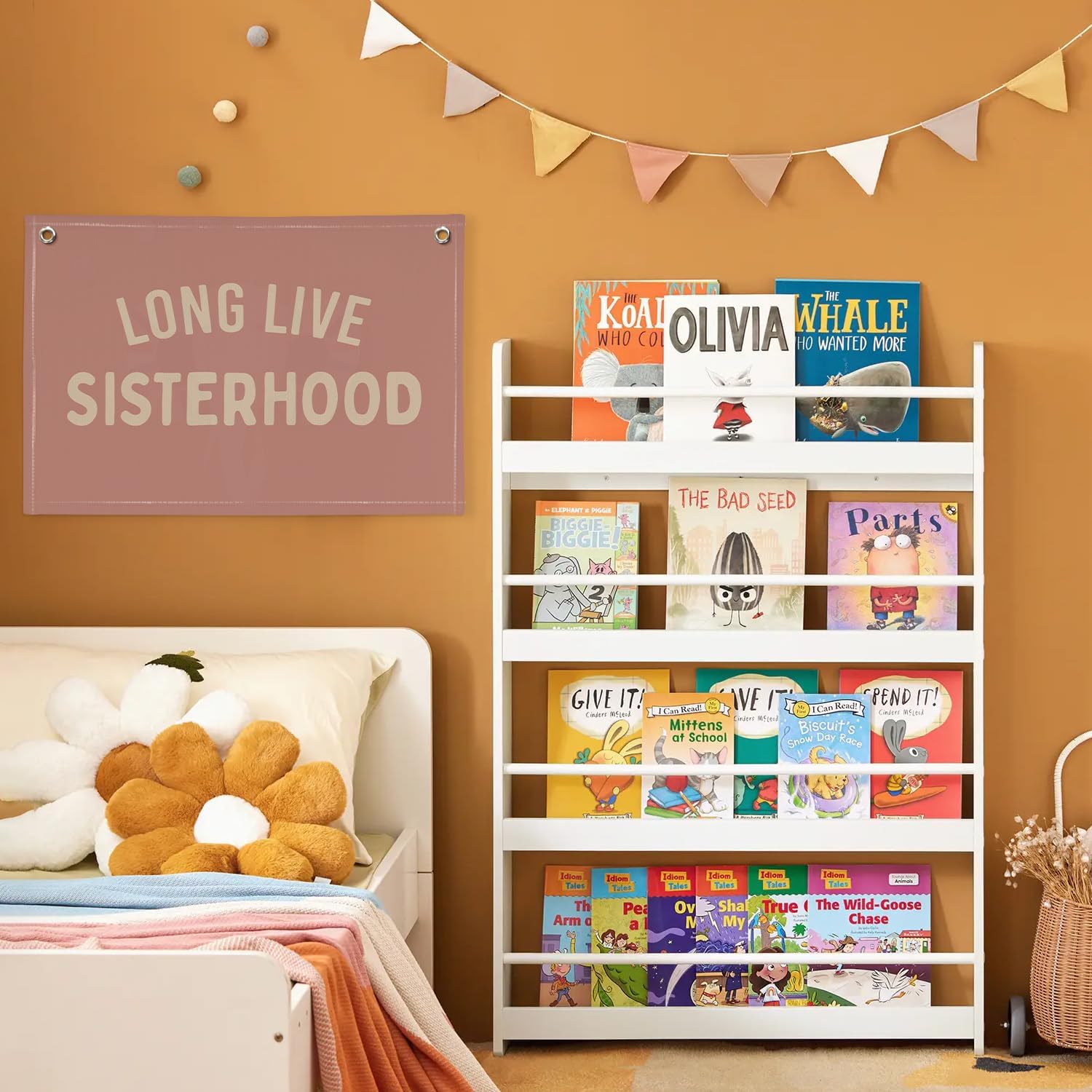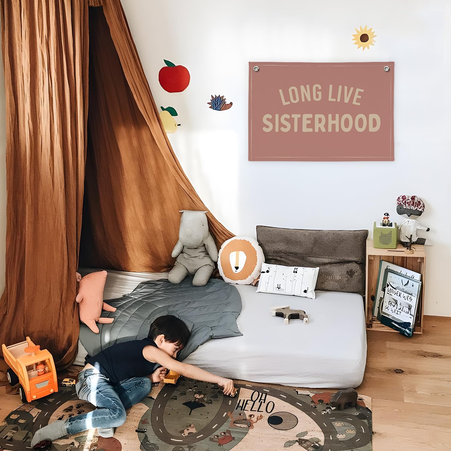 Girl Room Decor Long Live Sisterhood Linen Banner Hanging Flag Pink Banner for Nursery Playroom Wall Decor for Kids Bedroom Dorm Toddler Decorations Trendy Room Decor 30x20 In (Sisterhood)