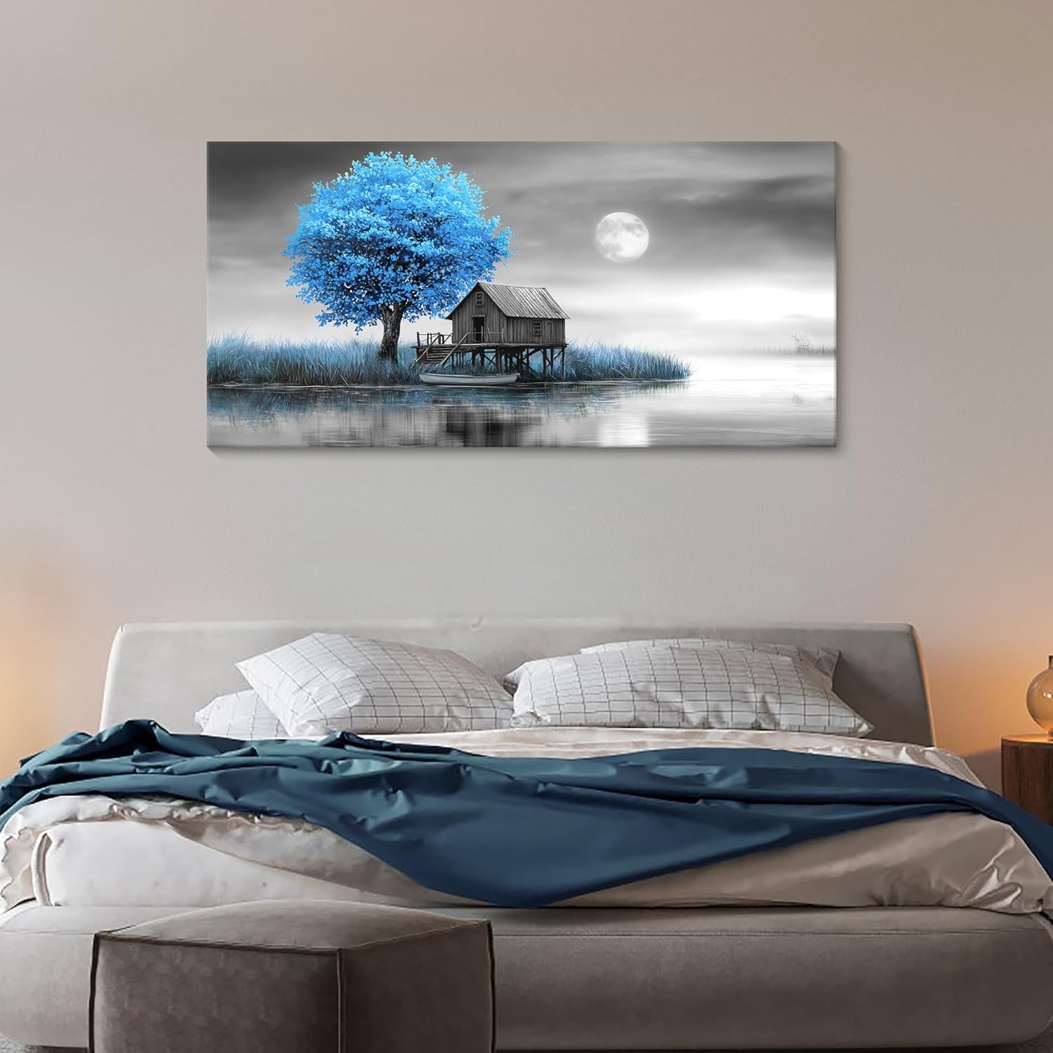 - Superb printing techniques: This blue gray wall art uses advanced printing techniques to ensure clarity and color accuracy. The reflection of moonlight on the water and the texture of the wooden house can be accurately represented.