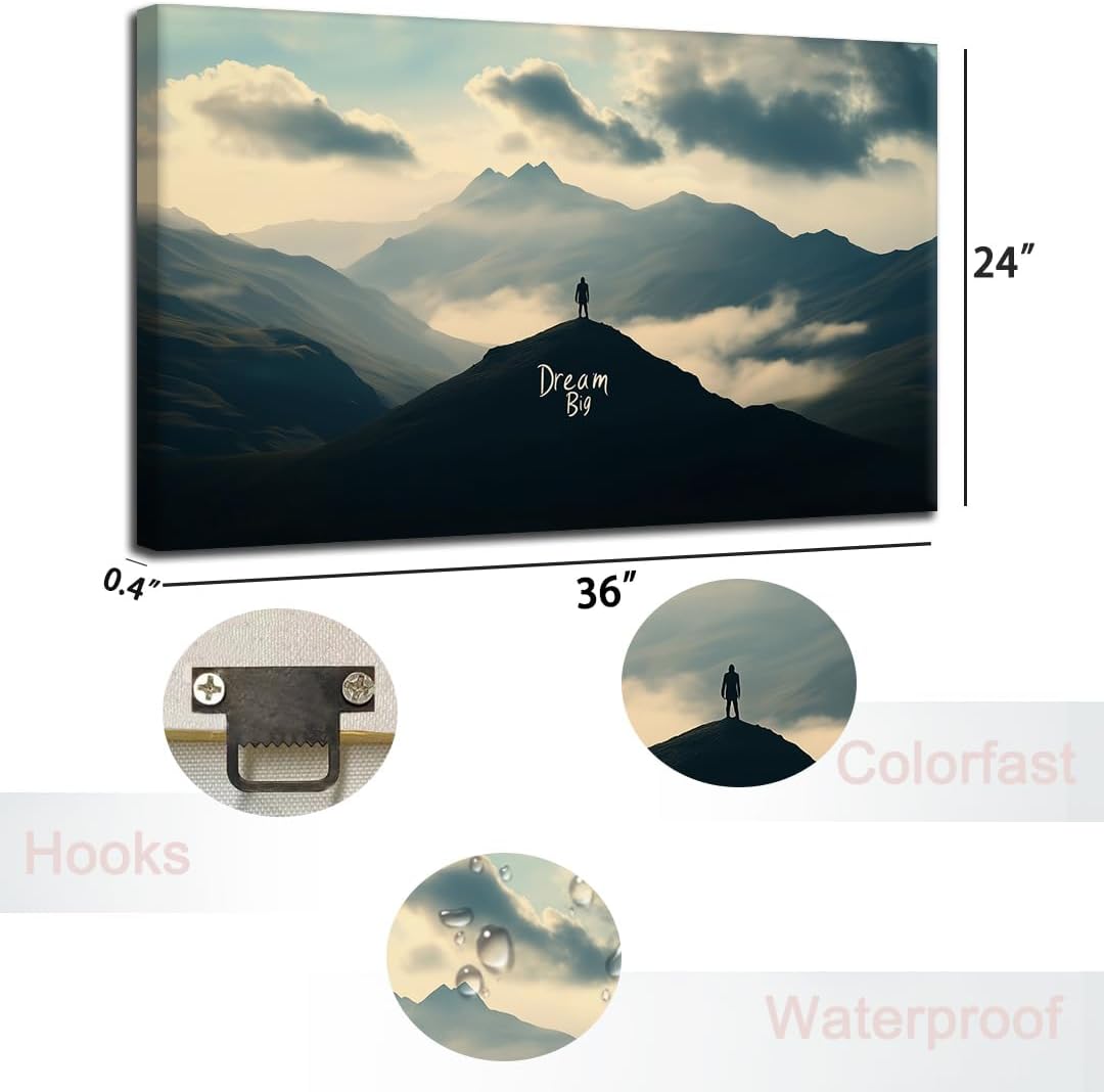 - [ INSPIRE DECOR ] This motivational wall art accompanied by the inspirational quote ''Dream Big" Encouraging positivity and passion in your daily life.