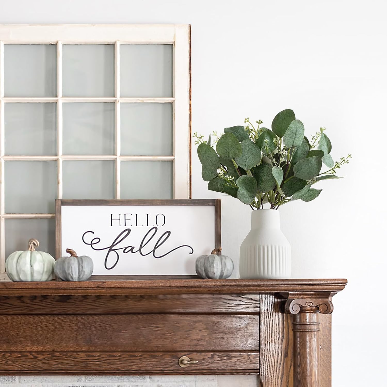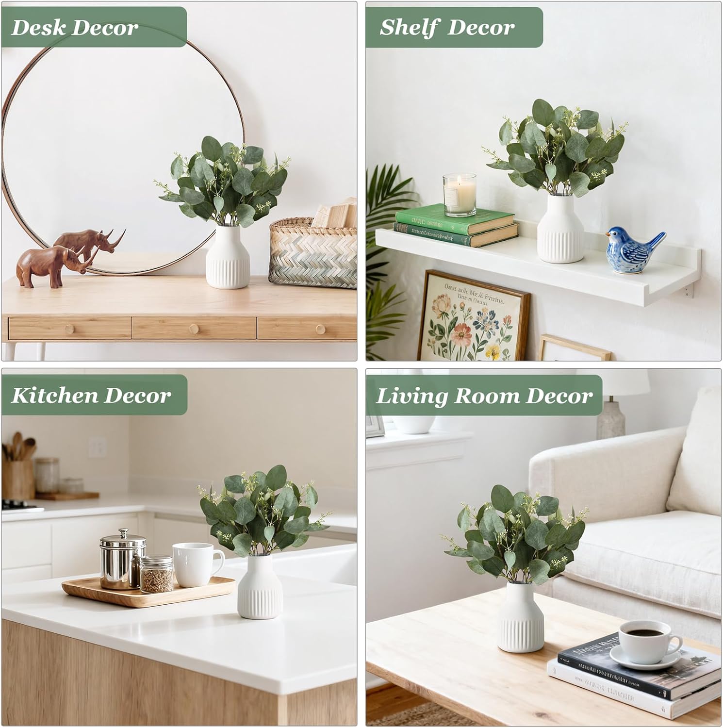 - Elegant Home Decor: This small ceramic vase with artificial eucalyptus plants is suitable for any style home decor, place it in bathroom, living room, kitchen, table centerpieces, bedroom, shelf, wedding, party, fireplace mantle and so on as decoration, create the space more exquisite and elegant, and it is also a perfect gift for family and friends