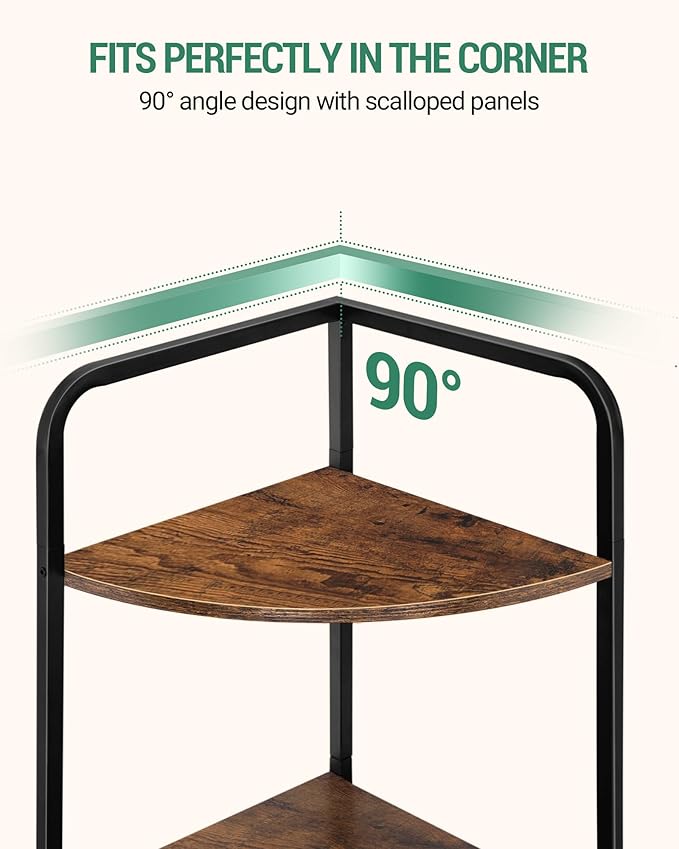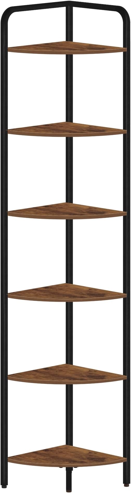 Corner Shelf Stand, Corner Bookshelf, Plant Shelf, Corner Display Rack, Standing Shelf with Metal Frame for Living Room, Bathroom, Kitchen, Industrial Style, 6 Tier Rustic Brown CS06601B