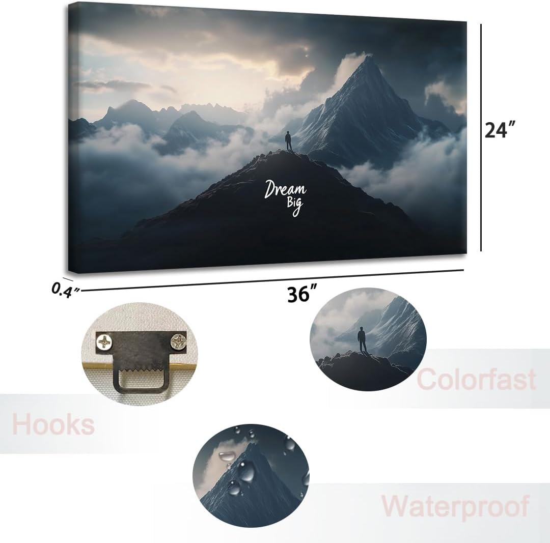 - [ INSPIRE DECOR ] This motivational wall art accompanied by the inspirational quote ''Dream Big" Encouraging positivity and passion in your daily life.