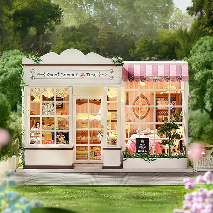 - Premium Quality & Exquisite Designed - Crafted from high-quality materials, our miniature furniture and wooden pieces fit together seamlessly. Featuring realistic dollouse accessories like cakes, dining sets, and display cases, this dollhouse resembles a true cake shop. The dust cover protects it from dirt, while the music movement adds joy during playtime. Its unique open-and-close design enhances the overall experience