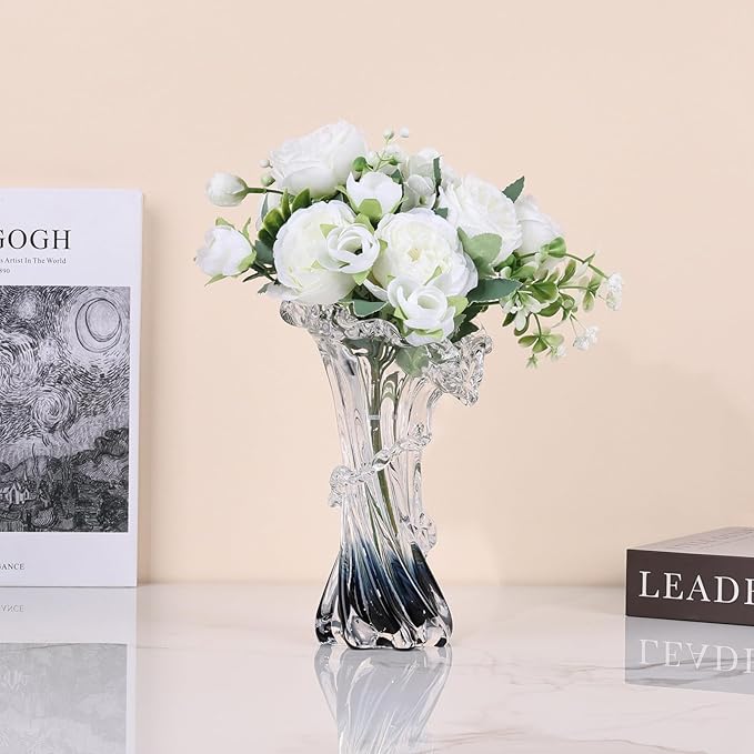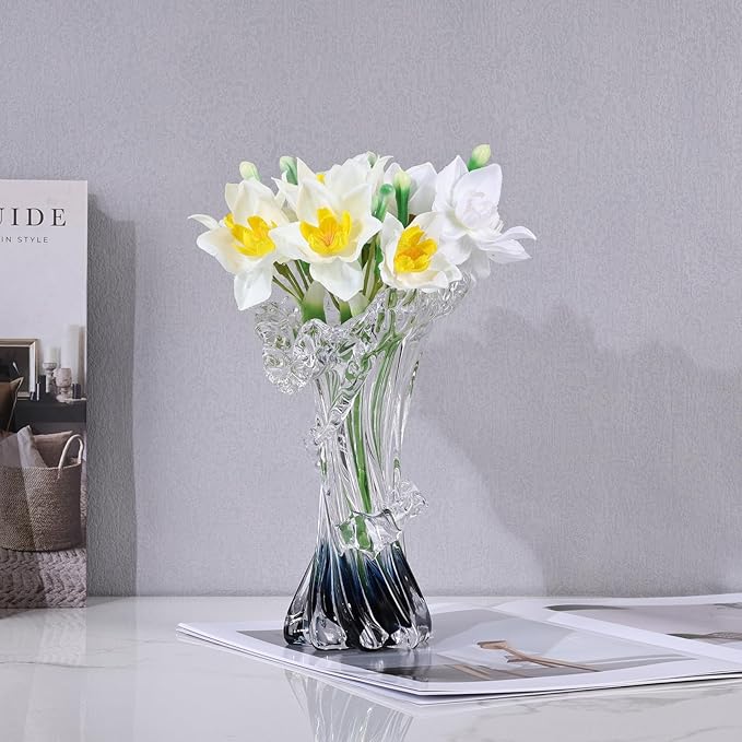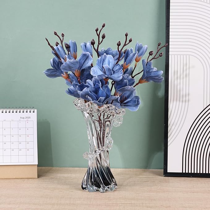 - Versatile Decorative Piece This glass flower vase is versatile enough for both flowers and decorative accents. It complements modern spaces, whether placed on a dining table, office counter, or entryway shelf. Its wave shape adds a unique and stylish flair to your living space, while its clear and blue glass design enhances the coastal theme.