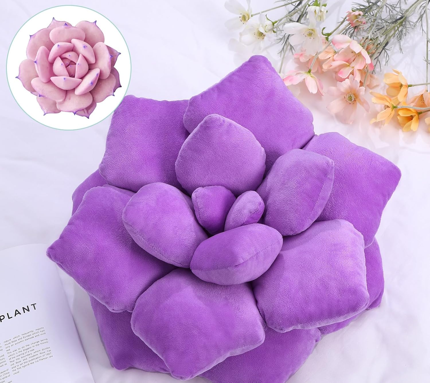 - [3D Hand-Stitched Plush Accent] Designed with plant lovers in mind, this hand-sewn pillow features a lifelike 3D fleshy plant design. Its soft micro plush exterior and thick PP cotton filling ensure both visual appeal and superior comfort.