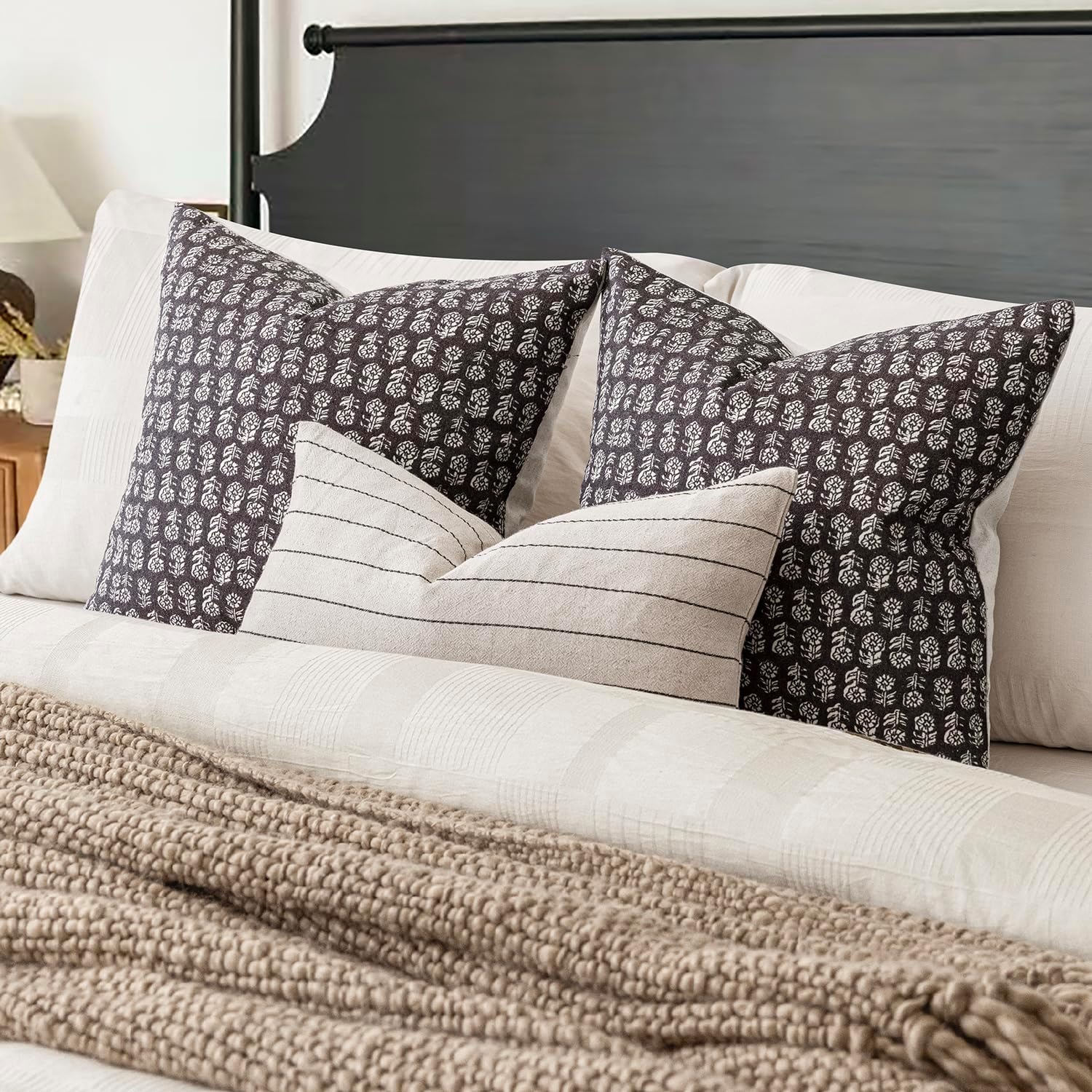 Foindtower Set of 2 Decorative Vintage Floral Print Throw Pillow Covers Neutral Modern Farmhouse Cushion Covers Boho Home Decor for Sofa Couch Chair Bedroom Living Room,20×20 Inch,Black