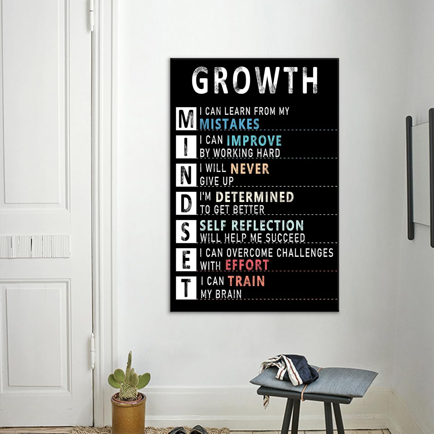 Mindset Growth Inspirational Canvas Poster Wall Art Motivational Entrepreneur Quotes Picture Painting Artwork for Living Room Workplace Classroom Wall Decoration Stretched and Framed [24''Wx36''H]