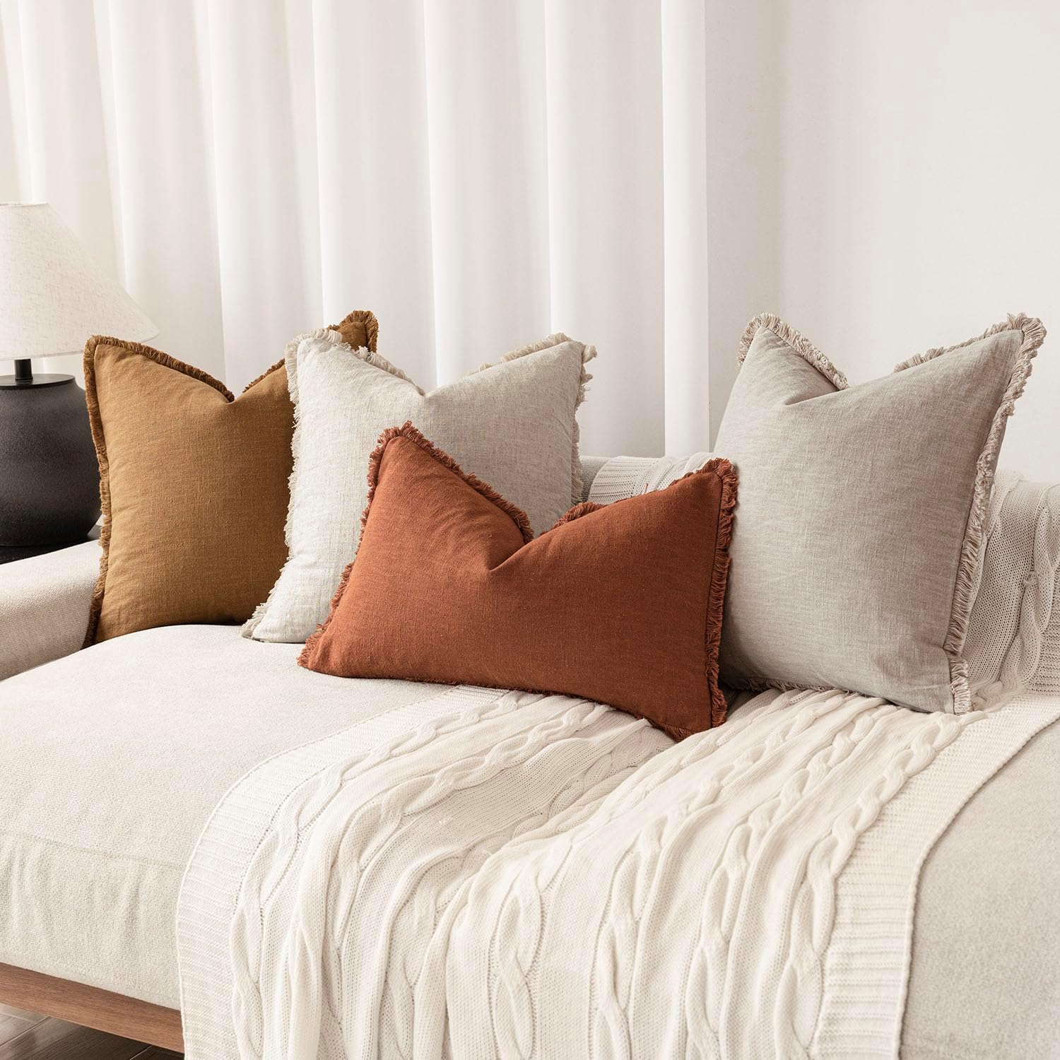 - 【Indoor & Outdoor Use】Available in a range of earthy, goes-with-anything hues for a look that works year-round. Fringed pillow covers is suitable for living room, bedroom, office, sunroom, den, kitchen benches, patio sets, nursery, car seat, floor, etc.
