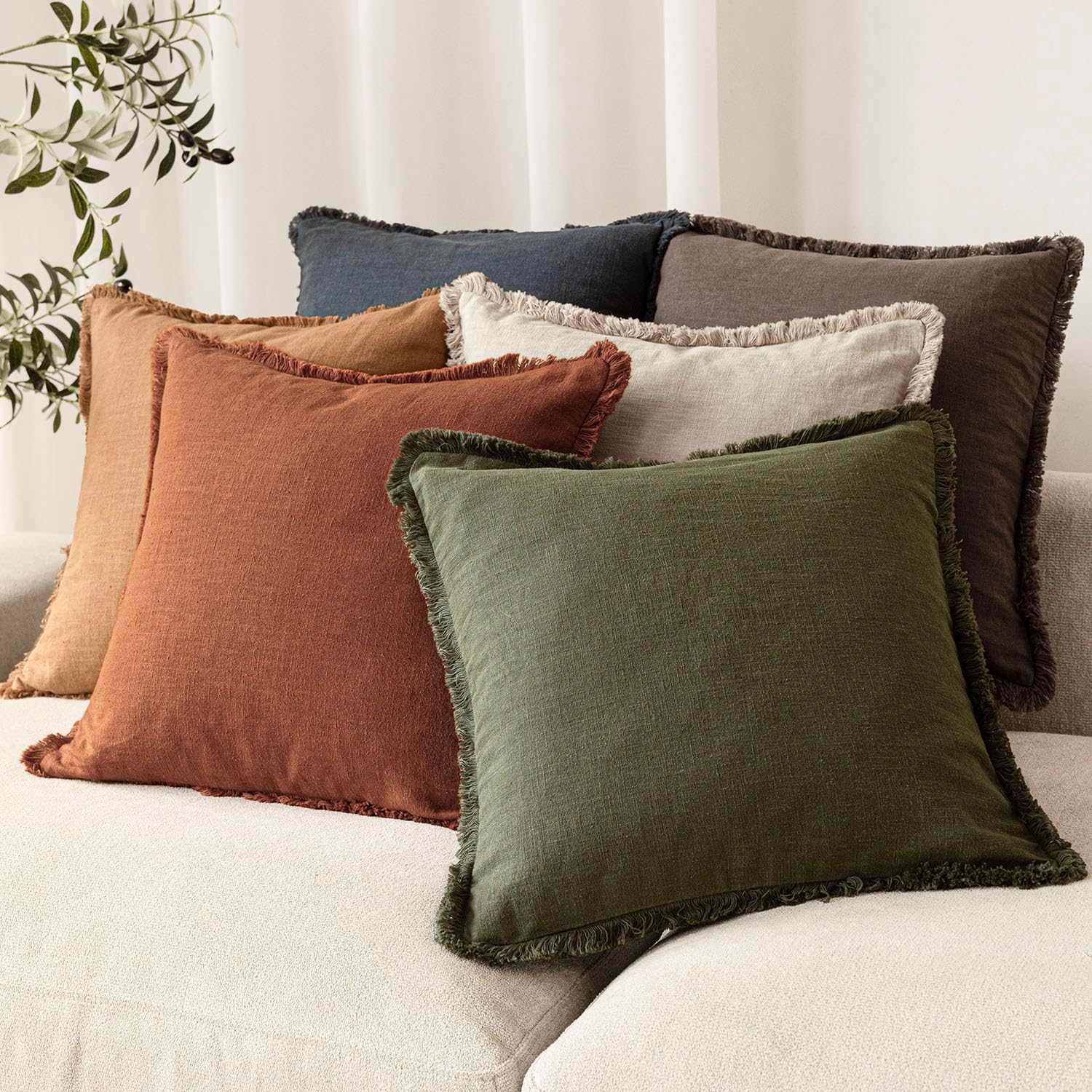 - 【Natural Linen Fabric】Our pillow cover is crafted of 80% natural ramie linen and 20% cotton. Natural linen fabric makes it soft, comfortable, breathable and durable for all season use. Treated with Stone Washed process, the pillow's creates subtle dimension, and a relaxed feel.