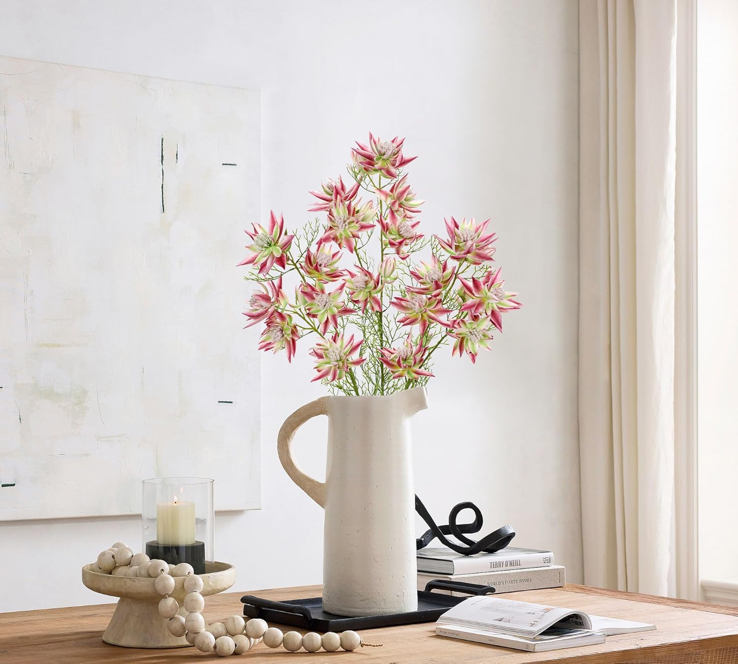 Hollyone 3Pcs Pink Artificial Flowers Silk 26.3" Fake Protea Flower with Long Stem Faux Flowers Arrangement Branch with 6 Heads for DIY Wedding Party Centerpiece Floral Bouquets Table Home Decor