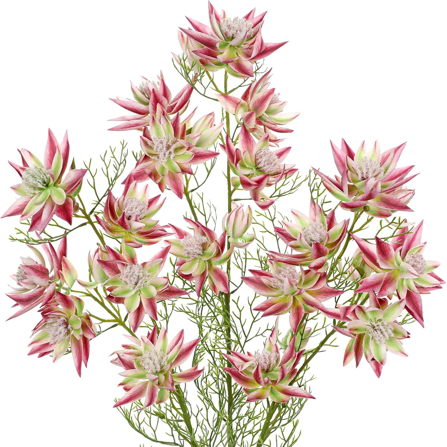 - 💐✨【Easy to care】Are you tired of dying flowers? Then our artificial protea flowers will be perfect for you. Unlike fresh flowers used for flower arrangement which require everyday upkeep, the protea fake flower can be placed and reusable in many settings for a long period without any care. Green stems and leaves, bright flowers, let your room and life exude a strong breath of love and life. Bringing beauty and good mood to your day, they are a great addition to your spring summer displays!