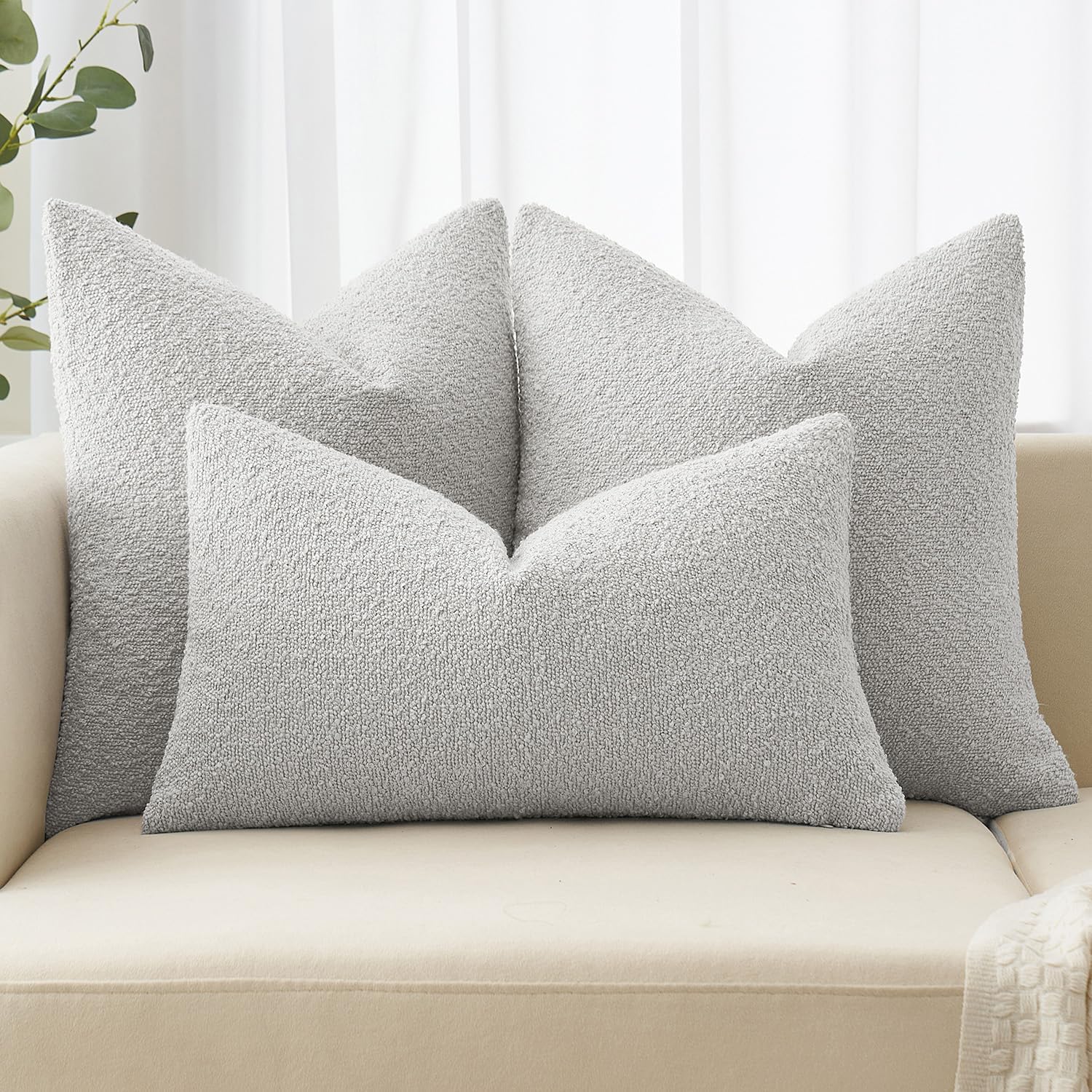 MIULEE 24x24 Decorative Euro Sham Throw Pillows for Bed Set of 2 Textured Boucle Neutral Winter Throw Pillow Covers Light Grey Accent Solid Couch Pillowcases Sofa Livingroom Home Decor
