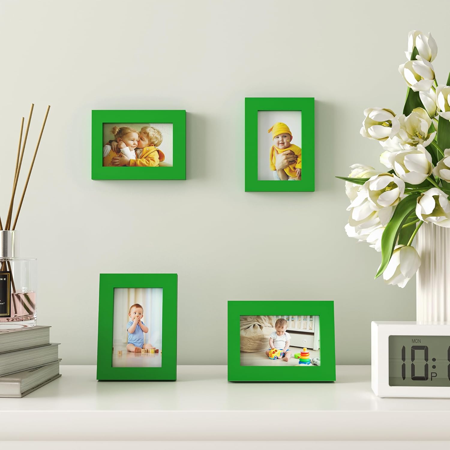 KINLINK 3.5x5 Picture Frame Grass Green, Solid Wood Frames with Plexiglass for Table Top and Wall Mounting, Photo Frames for Horizontal or Vertical Display, 4 Pack