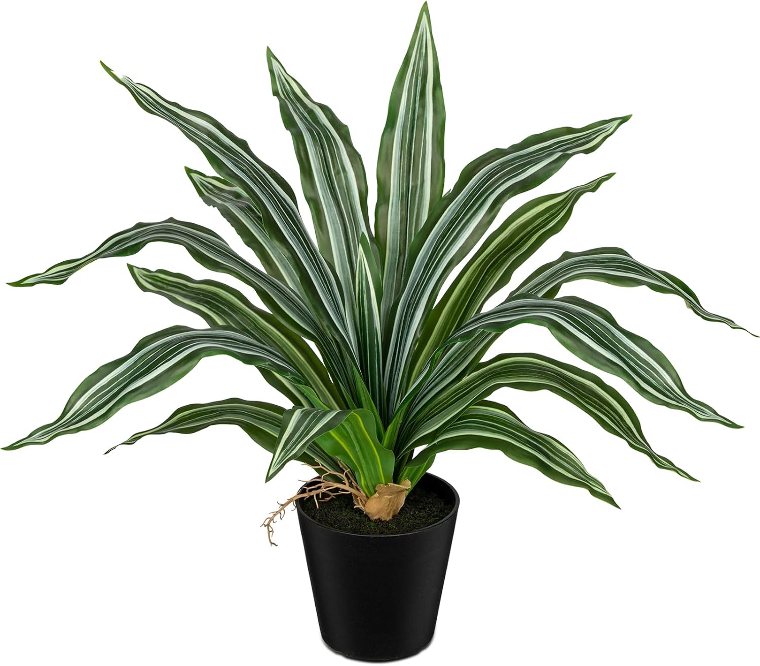 DILATATA Artificial Dracaena Plant in Black Pot 18.5 Inch Faux Potted Dracaena Silk Plant Fake Yucca Tree Tropical Plant for Home Office Living Room Indoor Outdoor Decor