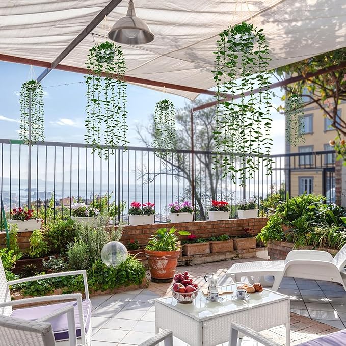 - 【Add Greenery to Your Home】Lifelike fake hanging plant in pot is a great way to add decorative touch and some fresh greenery to your living space.This artificial hanging plants looks just like the real plant but require no trimming or watering.They will stay fresh-looking all year round, good for patio plants, great artificial plant for home decor indoor.