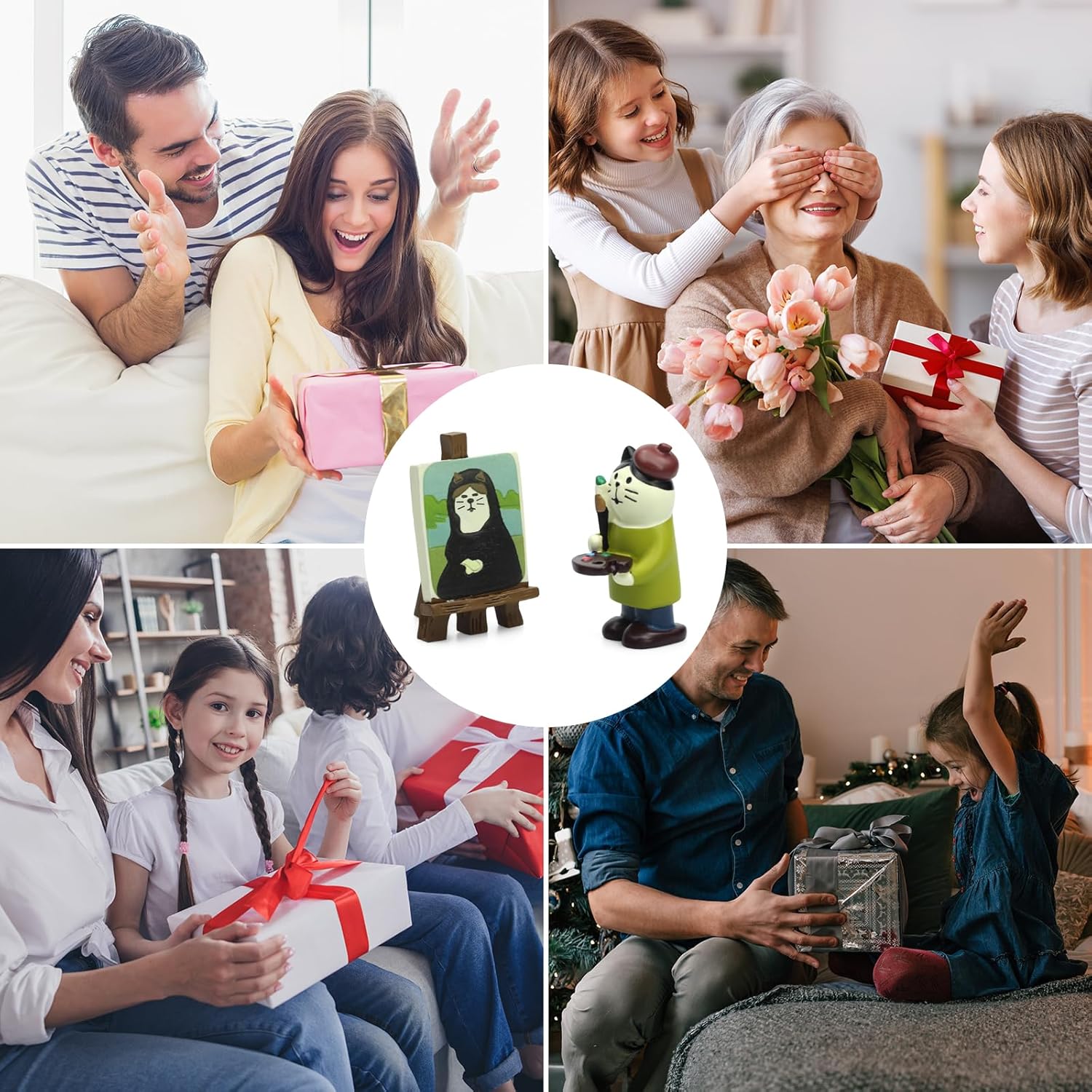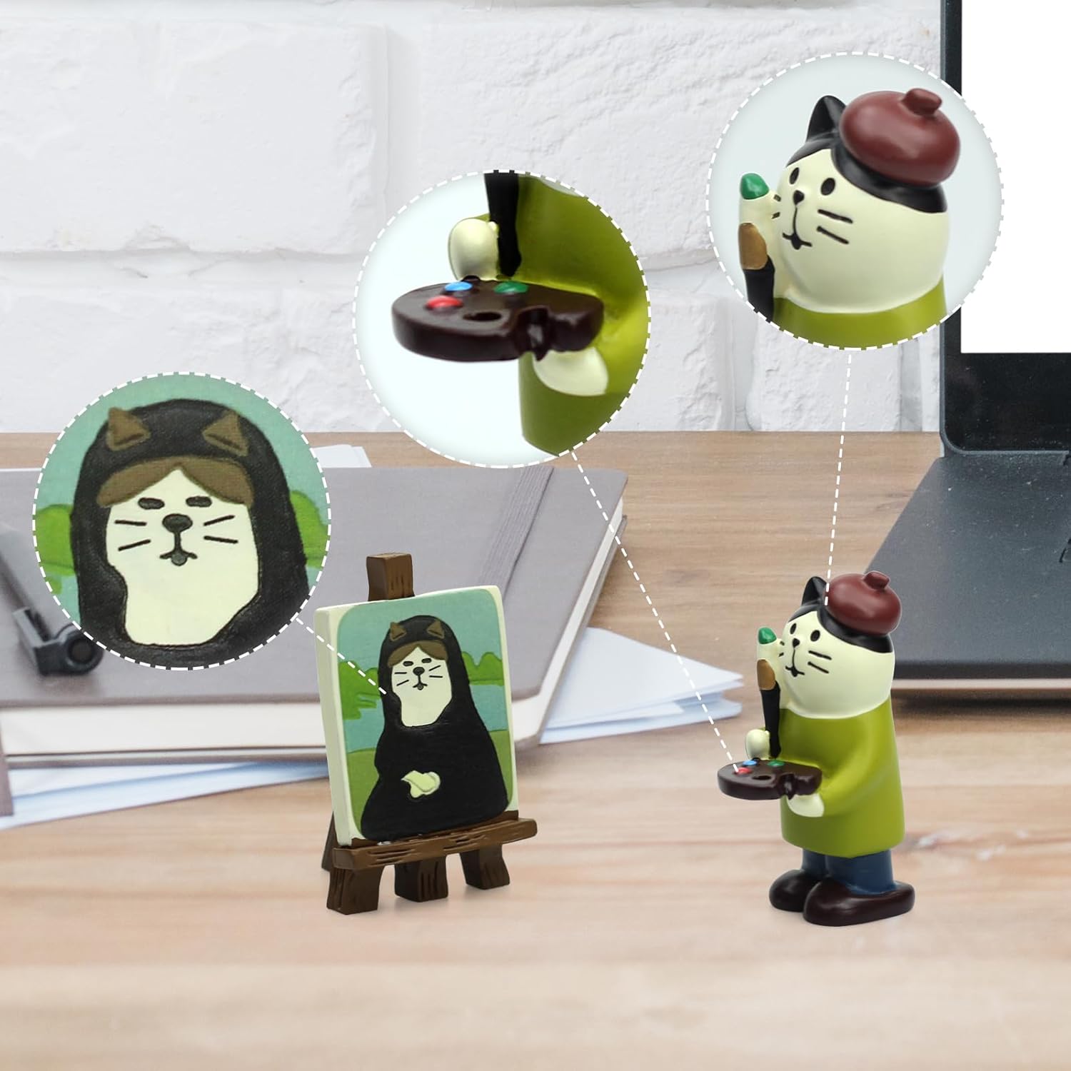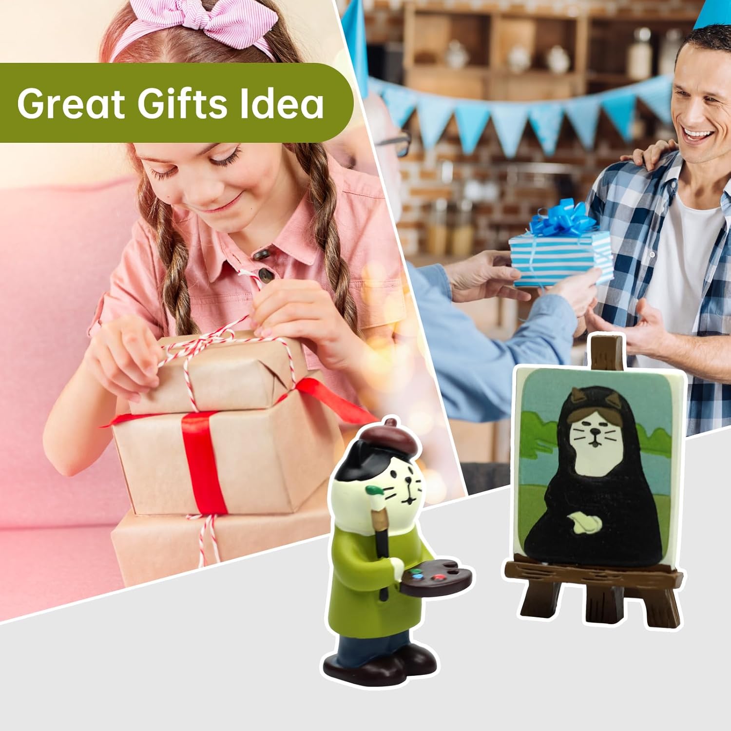 - Cute Desk Accessories: The cat artist measures 1*1.2*2 inches, and the cat painting easel measures 1.3*1.3*2.1 inches. This design adds charm and whimsy to your workspace