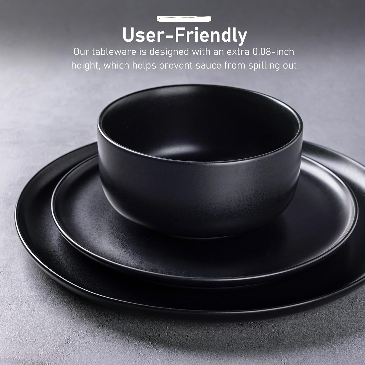 LERATIO Stoneware Dinnerware Sets for 4,Handcarft Ceramic Plates and Bowls Sets,Chip and Scratch Resistant Dishes, Dishwasher & Microwave Safe, Oven safe,Reactive Glaz-Black